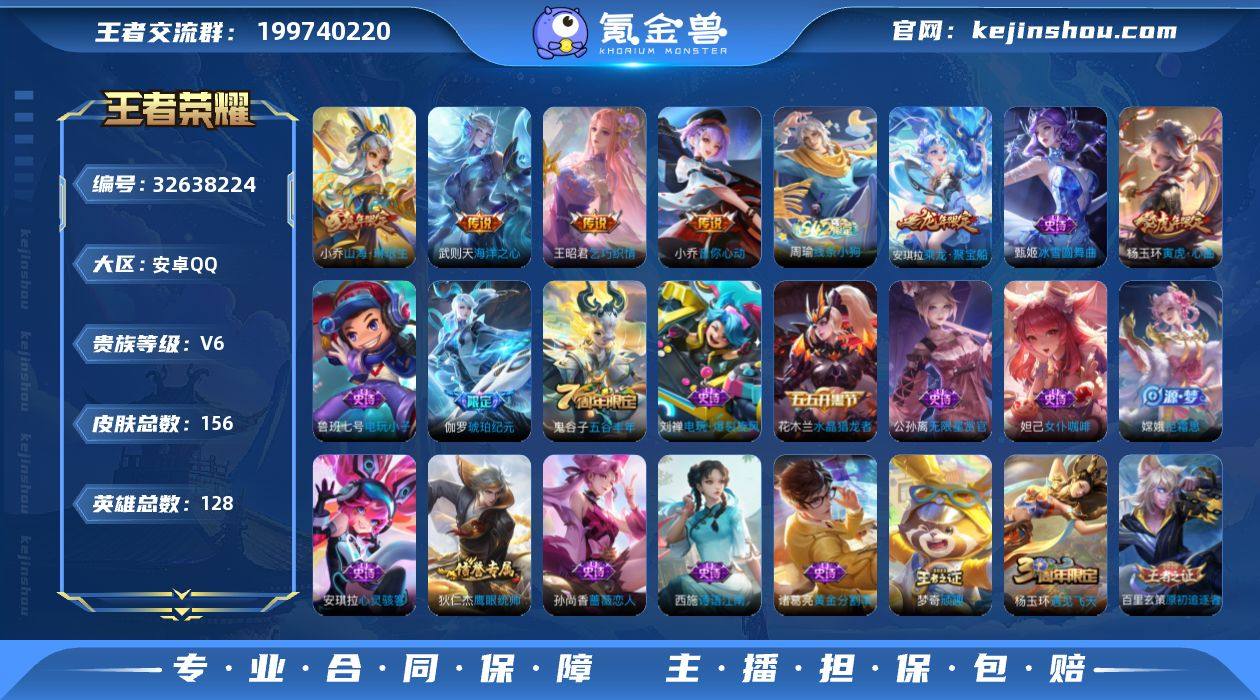 历史金标万战小乔号,多个银标,账号安全,皮肤156,英雄差个武则天,图鉴38,信誉分高,适合喜欢小乔、安琪拉的女生玩家。