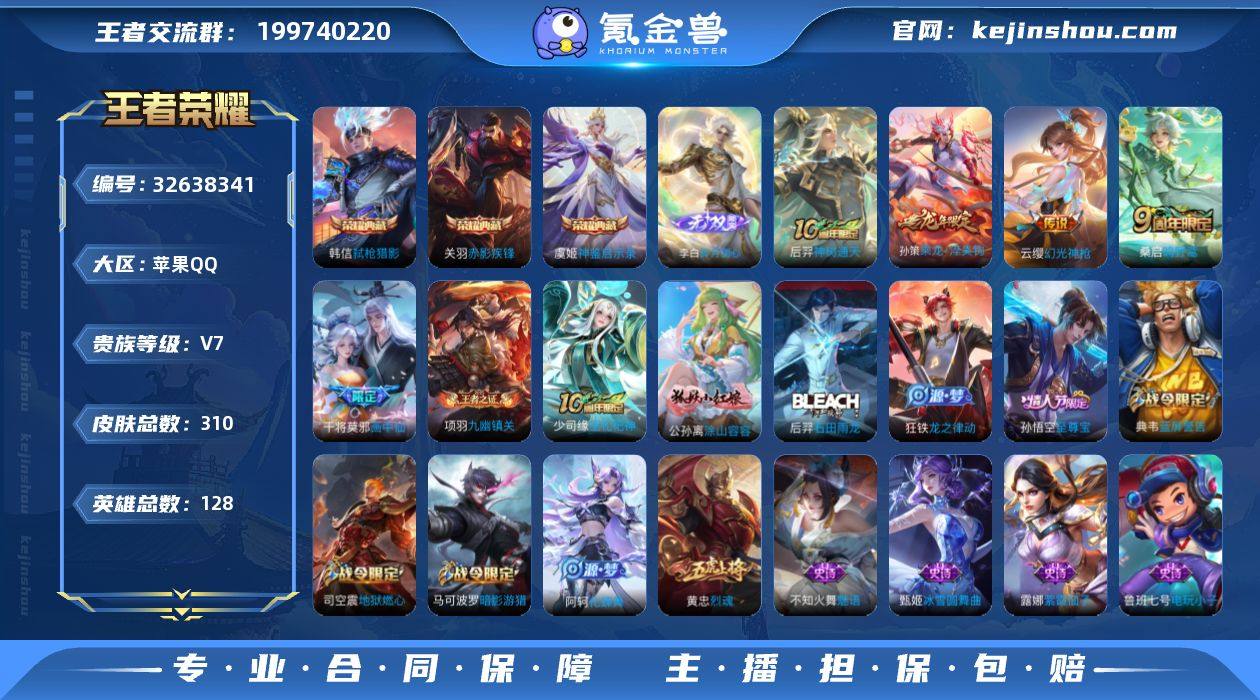 【王者荣耀】珍品无双0 典藏3 无双1 珍品传说0 传说6 史诗86 英雄128 皮肤310 贵族7级 荣耀典藏:神鉴启示录|赤影疾锋|弑枪猎影__无双皮肤:碎月剑心__传说皮肤:鸣野蒿|画中仙|孙尚香-末日机甲|乘龙·淬吴钩|幻光神枪|神树通天__稀有限定:至尊宝|烈魂|李小龙|梁祝|狮舞东方|拒霜思|暗影游猎|百解令|地狱燃心|繁星吟游|古海寻踪|海滩派对|海盐诗旅|后羿-如梦令|华丽摇滚|皇家上将|混沌棋|剑破天穹|江河有灵|蓝屏警告|黎明之约|迷踪丽影|魔术师|女武神|奇幻香踪|千军破阵|擒涛扼浪|驱傩正仪|燃音魔法|荣光圣徽|沙漠行僧|朔风刀|死亡摇滚|探海日志|醍醐杖|天穹祈灯|万华元夜|五谷丰年|纤云弄巧|星界游侠|星空之诺|驯魔猎人|演武夺筹|疑决卦|阴阳师|银河之约|驭风魔法|御旌|御銮|原初追逐者|暗夜贵公子|暗夜猫娘|暗隐猎兽者|缤纷独角兽|冰冠公主|冰雪圆舞曲|乘风破浪|德古拉伯爵|电玩·爆裂旋风|电玩小子|伽罗-琥珀纪元|功夫厨神|鬼剑武藏|黄金分割率|箭羽风息|金属风暴|乐园奇幻夜|李元芳-蔬乡物语|龙骑士|吕布-末日机甲|魅力维加斯|魅语|梦奇-顽趣|女仆咖啡|偶像歌手|青蛇|绅士熊喵|圣诞狂欢|圣诞恋歌|鲁班七号-蔬乡物语|水果甜心|水晶猎龙者|天才门将|天秀·启明|摇滚巨星|鹰眼统帅|...