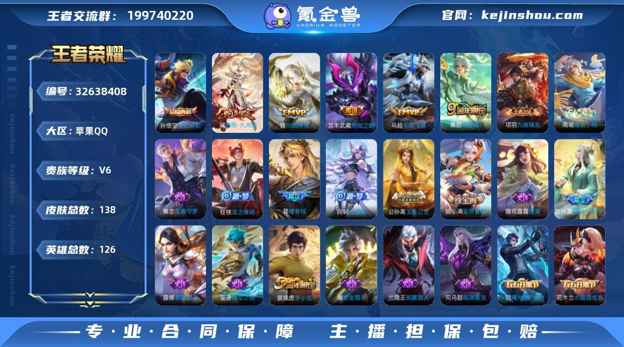 苹果Q-V6-小国标1w战力盘古-最强王者段位-126英雄-138皮肤-1典藏皮肤-5传说-43史诗HZ263236 【荣耀典藏】:孙悟空全息碎影 【传说皮肤】:澜愿照九州拓,桑启鸣野蒿,马超无双飞将,镜炽阳神光,宫本武藏地狱之眼 【限定皮肤】:暃埋骨钱,蒙犽顽岩魄,蔡文姬夏日便利店,虞姬夏日便利店,姜子牙天穹之誓,杨戬破阵退雄兵,狄仁杰阴阳师,赵云皇家上将,钟无艳王者之锤,狄仁杰魔术师,项羽海滩派对,兰陵王驯魔猎人,梦奇顽趣,公孙离玉兔公主,裴擒虎李小龙,猪八戒西部大镖客,高渐离燃音魔法,姬小满妄想食味,沈梦溪龙舞盛年,刘邦剑破天穹,程咬金群星魔术团,镜青焰无极,项羽苍威无极,刘备异域游侠,芈月浮光幕影,周瑜熔金海岸 【年限皮肤】:澜愿照九州拓 【赛季限定】:刘邦剑破天穹,姜子牙天穹之誓,东皇太一噬灭天穹,太乙真人谧流熔炉,钟馗虚灵犬护,甄姬逆浪荇歌,亚瑟荣光之誓,梦奇顽趣,牛魔星界战将,项羽九幽镇关 【战令限定】:兰陵王驯魔猎人,猪八戒西部大镖客,高渐离燃音魔法,镜青焰无极,项羽苍威无极,蔡文姬夏日便利店,虞姬夏日便利店,亚连破空之剑,孙悟空神迹守卫,孙膑茶境仙,马超访茗客,周瑜线条小狗 【史诗皮肤】:周瑜线条小狗,项...