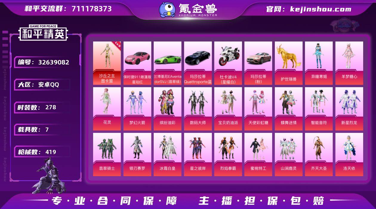 安卓手Q ZWM94【2神装43粉装19特效枪7载具20粉色飞行器 五级图卡盟 二级艾丽娅 数码大师/宝贝奶油派/天使彩虹糖/蝶舞迷情/梦幻火箭/智能音符/缤纷油彩/新星烈龙/翡翠骑士/银刃赛罗/冰霜白皇/星之彼岸/烈焰拳霸/蜜桃特工/山涧鹿灵/齐天大圣/洛天依/吟月归客/精灵娃娃/彩虹甜喵/旋转彩虹/冰川幽秘/银红美神/暗夜鎏金/纯珍童话】 【红色神装等级】:暮色玫影-艾丽娅(二级),沙丘之主-图卡盟(五级) 【红色角色神装】:沙丘之主-图卡盟,暮色玫影-艾丽娅 【热门品类】:角色-2P战斗服款,粉装-