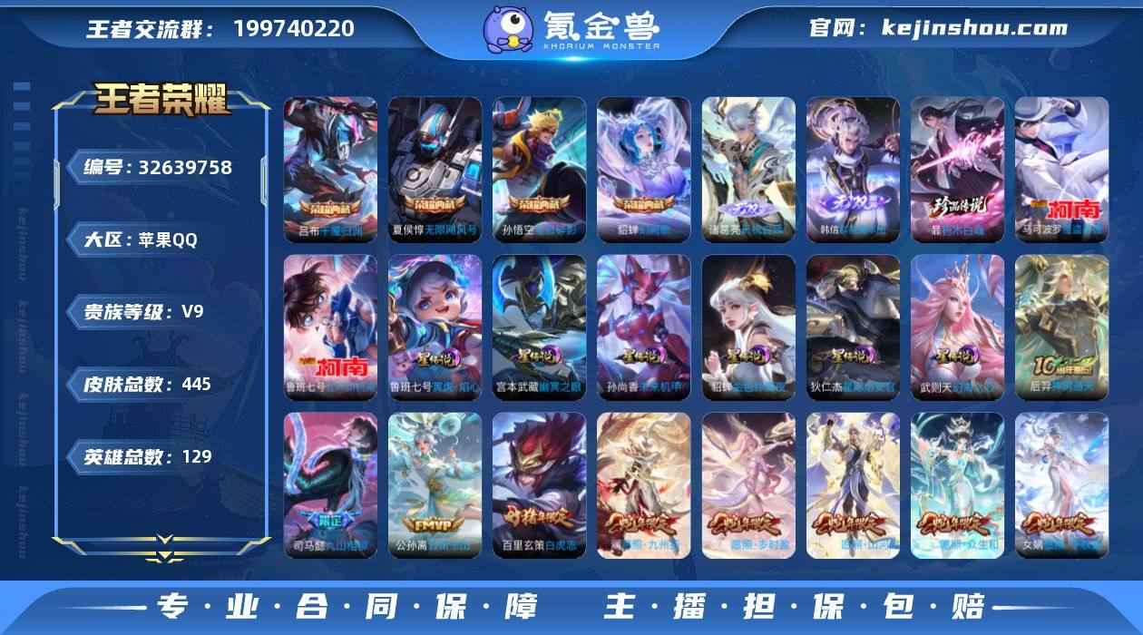 【939482】【高性价比·5典藏·全息碎影·无限飓风号·幻阙歌·千魇归渊·韩信群星魔术团·天机白泽·基德·柯南·朽木白哉·敬我三分天幕·满蛇年限定·白虎志·寅虎瑞焰·时雨天司·无二次包过】YXw21228-苹果Q-129英雄-445皮肤-12王者印记-300铭文-贵族积分11w【贵族9】【5典藏·2无双·3珍品·6星传说·34传说·1天幕·11按键】【因赛季更新游戏段付以上号为准!】 【英雄全皮】:司马懿全皮,孙权全皮,张良全皮,苍全皮,鬼谷子全皮,狂铁全皮,敖隐全皮,戈娅全皮,空空儿全皮 【荣耀典藏】:武则天英雄,孙悟空全息碎影,夏侯惇无限飓风号,貂蝉幻阙歌,吕布千魇归渊 【无双皮肤】:诸葛亮天机白泽,韩信群星魔术团 【珍品传说】:暃朽木白哉,鲁班七号江户川柯南,马可波罗怪盗基德 【星元皮肤】:鲁班七号寅虎焰心,狄仁杰星际治安官,孙尚香未来机甲,武则天幻海之心,宫本武藏幽冥之眼,貂蝉金色仲夏夜 【天幕】:敬我三分天幕 【传说皮肤】:后羿神树通天,司马懿九山相柳,公孙离云诺千山,司空震愿照山河定,女娲愿照千秋盛,妲己愿照众生和,澜愿照九州拓,蔡文姬愿照福禄聚,虞姬愿照岁时盈,桑启鸣野蒿,澜逐花归海,蔡文姬花朝如约,鲁班七号寅虎瑞焰,赵云淬星耀世,王昭君乞巧织...