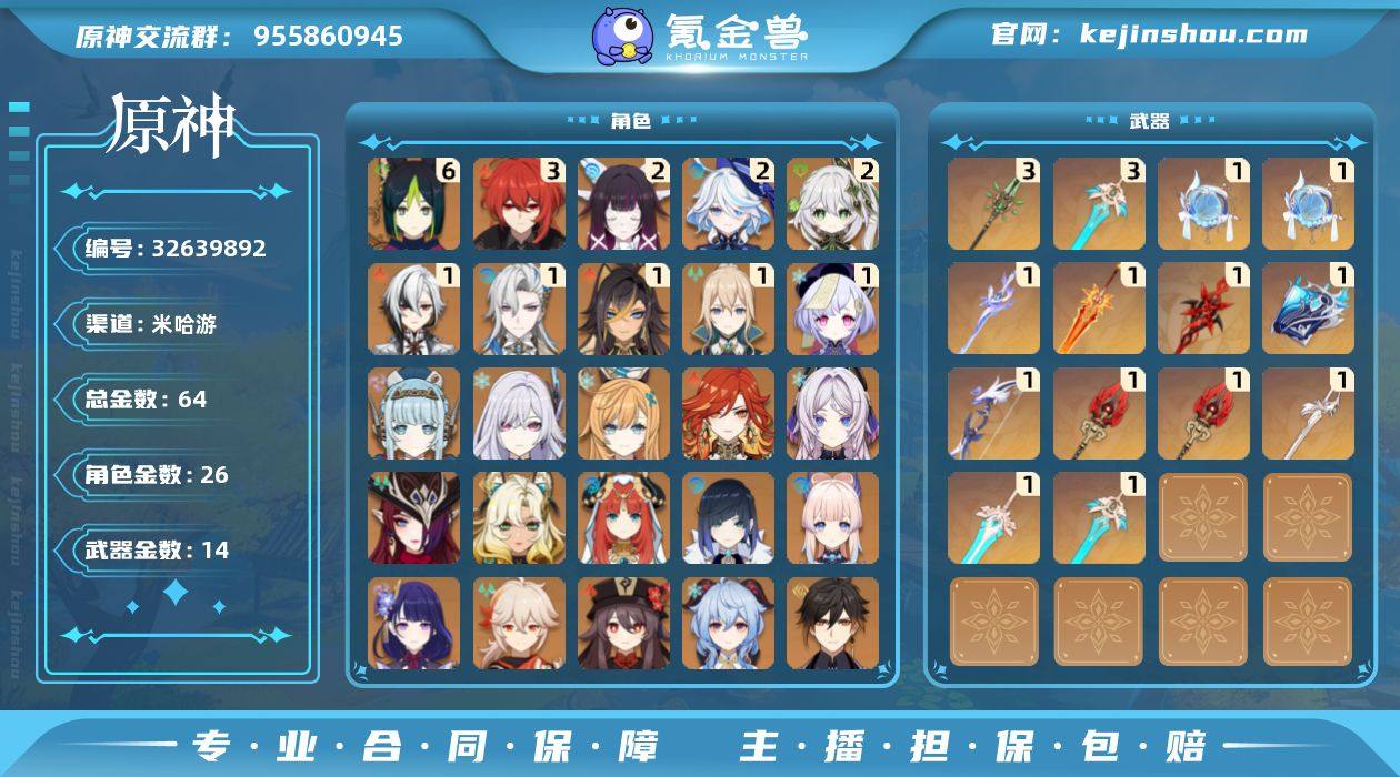丝马龙仆全有专武,6命95级提纳里,包里还有一个命星,活动还可以选一个。2+2少女(两把,没精炼),2+0芙芙纳西妲,1+1龙王仆人,0+1火神丝柯克夜兰胡桃,伊涅芙爱可菲奶奶希诺宁全有,配队齐全。地图全满,没有肝图压力。