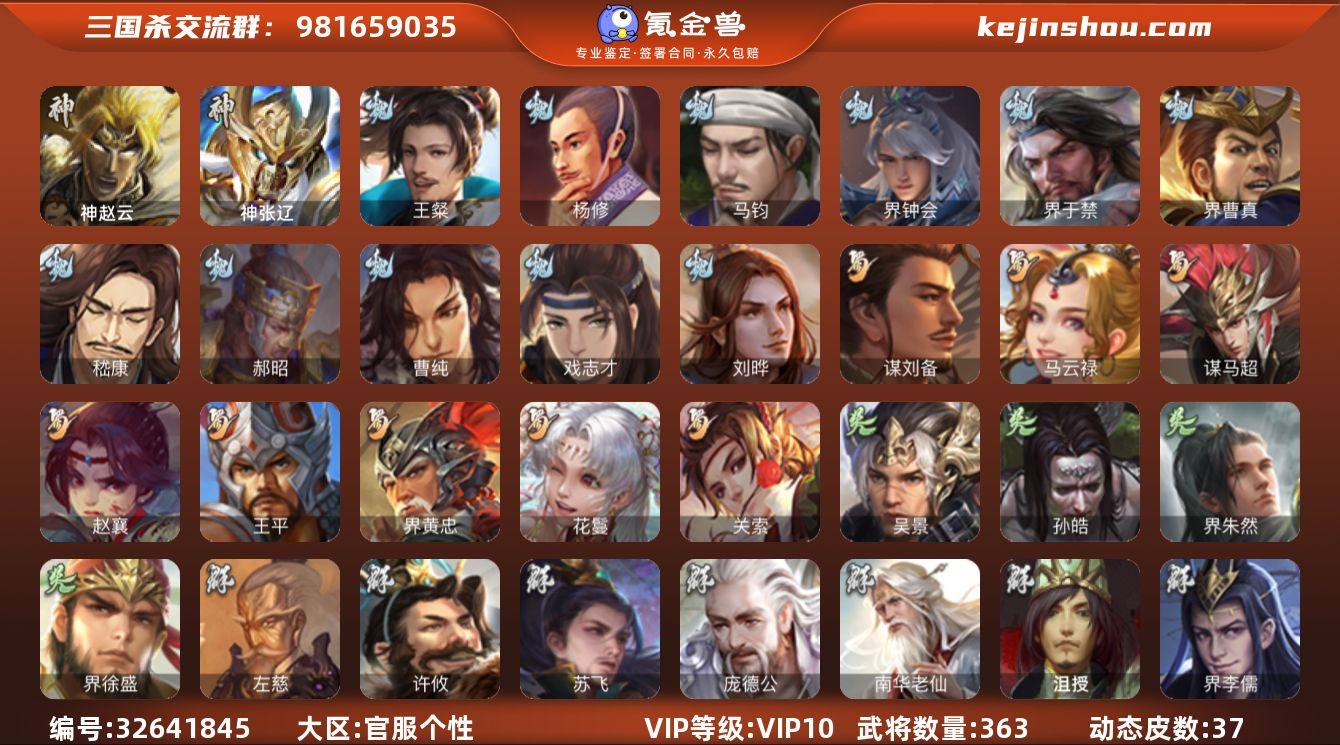 【517】官阶:大将军;VIP等级:VIP10;史诗武将数量:37;动态皮肤数量:37;武将总数:363;史诗宝珠数量:0;将魂数量:3229;神将:4;魏国史诗武将:17;蜀国史诗武将:8;吴国史诗武将:4;群史诗武将:10