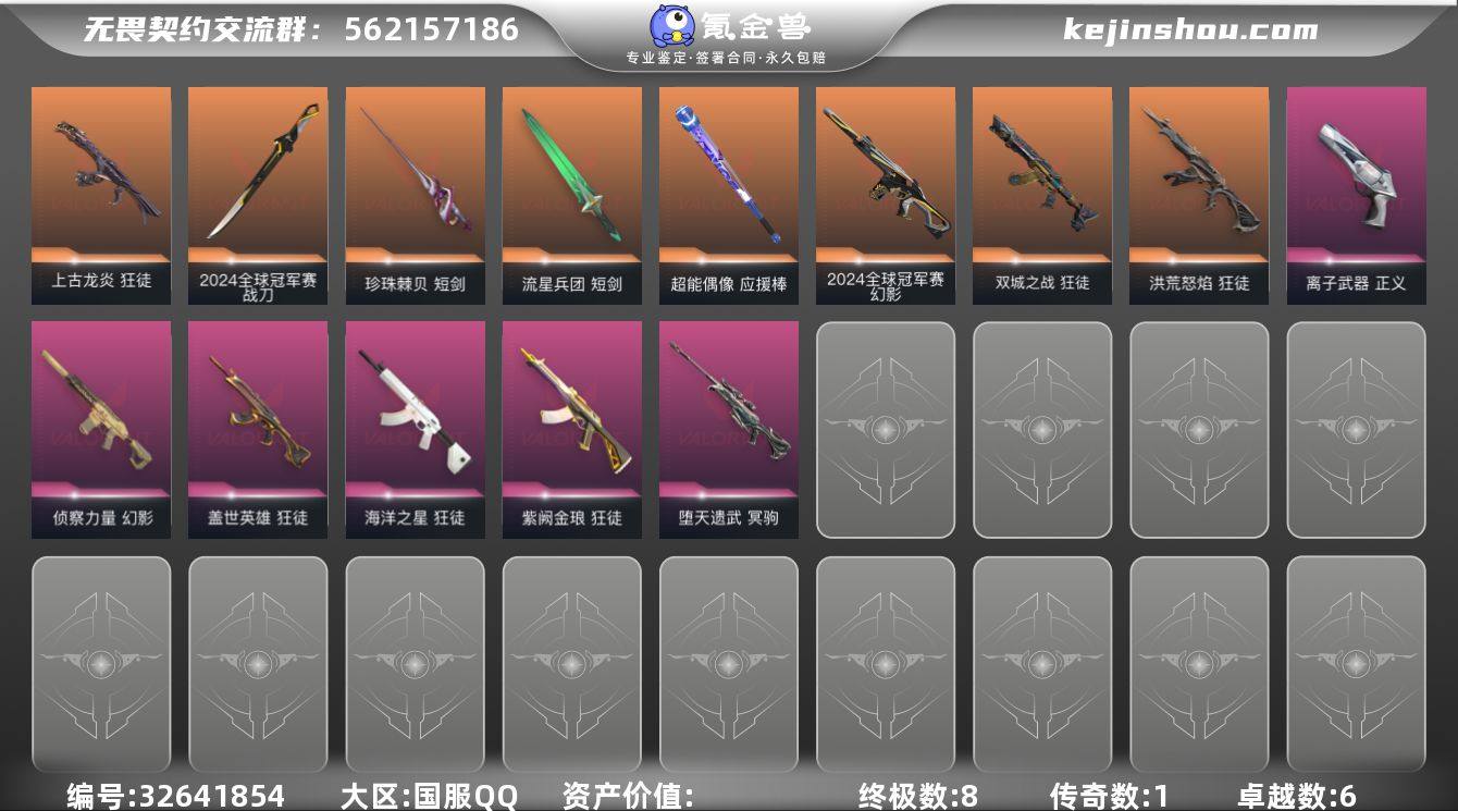 【939615】【套装】:2024全球冠军赛套装 【英雄】:幻棱,炼狱,维斯,暮蝶,钛狐,壹决,铁臂,捷风,雷兹,幽影,不死鸟,贤者,猎枭,蝰蛇,零,芮娜,奇乐,尚勃勒,霓虹,斯凯,夜露,星礈,K/O,海神,盖可,黑梦,钢锁 【近战武器】:近战武器-2024全球冠军赛 战刀,近战武器-剥皮小刀,近战武器-珍珠棘贝 短剑,近战武器-流星兵团 短剑,近战武器-超能偶像 应援棒 【狂徒】:狂徒-洪荒怒焰,狂徒-双城之战,狂徒-上古龙炎,狂徒-盖世英雄,狂徒-海洋之星,狂徒-紫阙金琅,狂徒-超能偶像,狂徒-流星兵团 【幻影】:幻影-2024全球冠军赛,幻影-侦察力量,幻影-珍珠棘贝,幻影-聚合之力 【戍卫】:戍卫-超能偶像,戍卫-珍珠棘贝,戍卫-战术熊与伙伴们 【獠犬】:獠犬-采蜜小蜂队,獠犬-复古浪潮 【冥驹】:冥驹-堕天遗武,冥驹-复古浪潮 【飞将】:飞将-聚合之力,飞将-战术熊与伙伴们 【莽侠】:莽侠-深海水族,莽侠-纤云弄巧 【战神】:战神-采蜜小蜂队,战神-深海水族 【奥丁】:奥丁-流星兵团 【判官】:判官-超能偶像,判官-采蜜小蜂队 【雄鹿】:雄鹿-复古浪潮 【骇灵】:骇灵-流星兵团,骇灵-珍珠棘贝,骇灵-无限竞技 【蜂刺】:蜂刺-聚合之力,蜂刺-深海水族,...