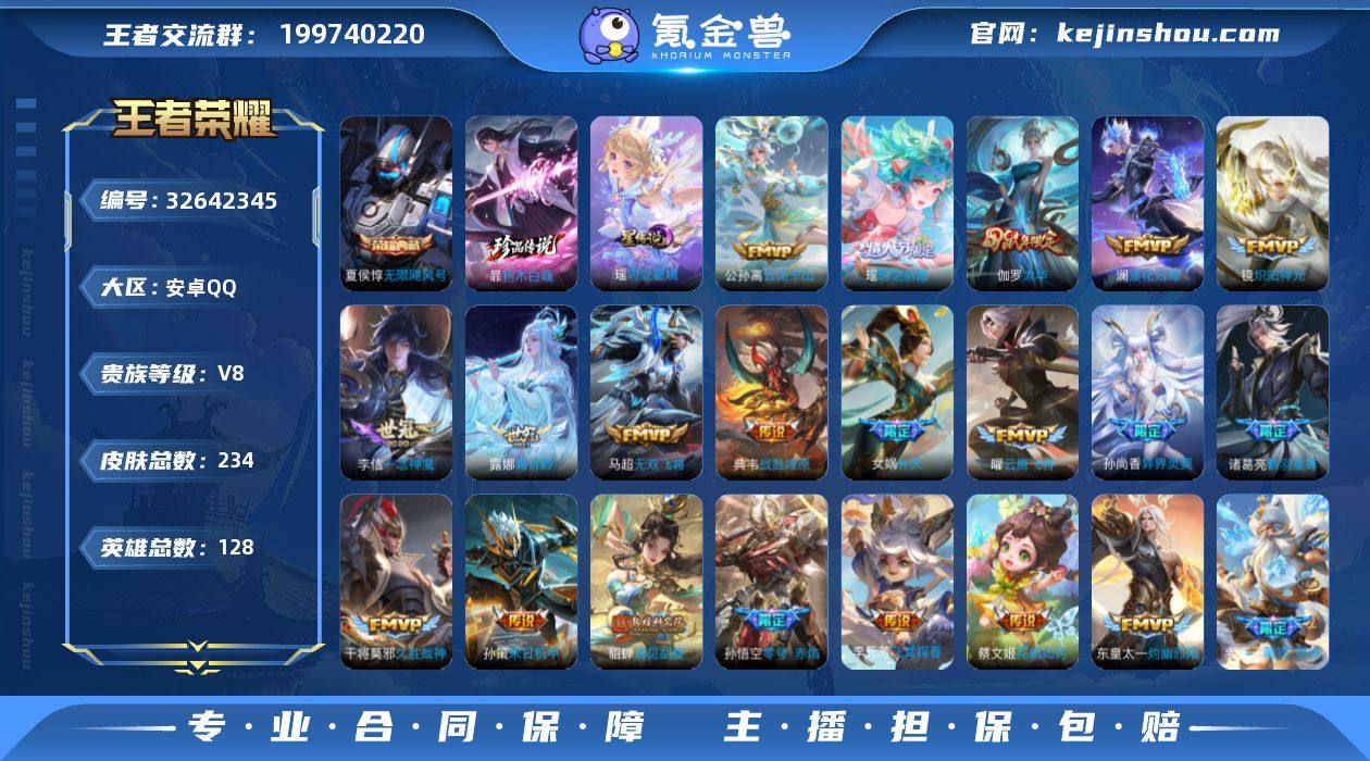 【精品推荐·紫瑶·金标貂蝉·无限飓风号·暃朽木白哉·云诺千山·愿照岁时盈·战鼓燎原·澜逐花归海·霜月吟·灼幽烈阳·鹤羽星尊·遇见胡旋·寅虎赤拳·花朝如约·可二次】w21165-安卓Q-128英雄-234皮肤-8王者印记-260铭文-贵族积分5w【贵族8】【1典藏·1珍品·2星传说·26传说·2天幕·11按键】【因赛季更新游戏段付以上号为准!】 【荣耀典藏】:夏侯惇无限飓风号 【珍品传说】:暃朽木白哉 【星元皮肤】:鲁班七号寅虎焰心,瑶时之愿境 【天幕】:秋月华灯天幕,共赏芳华天幕 【传说皮肤】:公孙离云诺千山,虞姬愿照岁时盈,桑启鸣野蒿,典韦战鼓燎原,澜逐花归海,露娜霜月吟,东皇太一灼幽烈阳,诸葛亮鹤羽星尊,吕布怒海麟威,马超无双飞将,蔡文姬花朝如约,女娲补天,孙策末日机甲,瑶时之祈愿,裴擒虎寅虎赤拳,鲁班七号寅虎瑞焰,孙尚香异界灵契,貂蝉遇见胡旋,李元芳飞鸢探春,镜炽阳神光,虞姬启明星使,孙悟空零号赤焰,曜云鹰飞将,李信一念神魔,伽罗太华,干将莫邪久胜战神 【限定皮肤】:姜子牙天穹之誓,狄仁杰阴阳师,小乔纯白花嫁,廉颇寅虎御盾,赵云皇家上将,赵云百木心枪,孙尚香异界灵契,鲁班七号寅虎瑞焰,庄周高山流水,孙膑寅虎展翼,白起夜都怪侠,芈月幻夜卜梦...