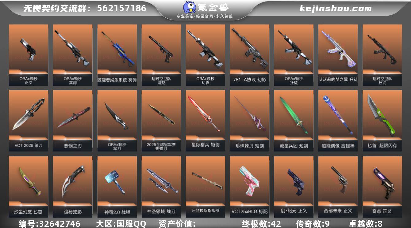 【939650】无畏契约精品大号 限定玩到手软 玩够可回血 qyz9673 【近战武器】:近战武器-2025全球冠军赛 蝴蝶刀,近战武器-碎心裂刃,近战武器-VCT 2026 篆刀,近战武器-无畏契约季前邀请赛 悲悯之刃,近战武器-ORA x 颗秒 军刀,近战武器-魔术火花,近战武器-影钩,近战武器-剥皮小刀,近战武器-紫金爪刀,近战武器-落英飞旋,近战武器-镭切,近战武器-威龙之刃,近战武器-鬼丸国纲,近战武器-珍珠棘贝 短剑,近战武器-流星兵团 短剑,近战武器-超能偶像 应援棒,近战武器-超限闪存 匕首,近战武器-沙尘幻旅 匕首,近战武器-诡秘蛇影 军刀,近战武器-神罚//2.0 战锤,近战武器-神圣领域 战刀,近战武器-阿特拉斯指挥部 甩棍,近战武器-星际猎兵 短剑,近战武器-魔术火花 【狂徒】:狂徒-2025全球冠军赛,狂徒-混沌序曲,狂徒-双城之战,狂徒-塑水宗,狂徒-偃月苍龙,狂徒-创·纪元,狂徒-噬影者,狂徒-光荣异象,狂徒-ORA x 颗秒,狂徒-艾沃莉的梦之翼,狂徒-超时空卫队,狂徒-掠影,狂徒-盖亚的复仇,狂徒-海洋之星,狂徒-超能偶像,狂徒-流星兵团,狂徒-沙尘幻旅,狂徒-诡秘蛇影,狂徒-神罚//2.0 【幻影】:幻影-破败军械,幻影-千灵华绽,幻影-ORA x 颗秒,幻影-781-A协议...
