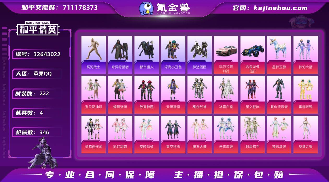 【特价出售/店主推荐】/老木乃伊/ M416-至情至圣(九级) 苹果 手Q-23粉装-13特效枪-4载具-9粉色飞行器-129883热力值-16王牌印记-222套装-346枪皮【热门品类】:粉装-梦幻火箭,套装-浪漫天命,套装-都市猎人,套装-冥河战士,套装-深海小丑鱼,套装-小丑鱼,套装-奇异狩猎者,套装-胖达团团,套装-金羽特工,套装-龟仙人,套装-暗影哥特【粉色套装】:粉装-宝贝奶油派,粉装-蝶舞迷情,粉装-梦幻火箭,粉装-放客神游,粉装-天禅智恒,粉装-绚金战神,粉装-冰霜白皇,粉装-星之彼岸,角色-复仇流浪者,粉装-垂柳戏鸭,粉装-灵感创作师,粉装-彩虹甜喵,粉装-旋转彩虹,粉装-青空秋雨,粉装-第五大道,粉装-未来歌姬,粉装-射星猎手,粉装-莲影清波,角色-圣堂之誓,粉装-蜜语绒猫,角色-初号机 觉醒Ver.,角色-荧海星豚,角色-奇迹舞步 美雪【粉色枪皮等级】:AKM-梦之光华(七级),SCAR-L-纯梦嫁纱(五级),M416-暖熊萌萌(五级),M416-至情至圣(九级),GROZA-旋转彩虹(六级),M762-激战未来(五级),UZI-筑梦精灵(五级),UMP45-量子极限(五级),Kar98K-巳巳如意(五级),M249-彩虹甜喵(五级),DP-28-豹影疾电(四级),MG3-梦幻舞会(五级)【粉色载具】:玛莎拉蒂Ghibli(粉),合金龙...