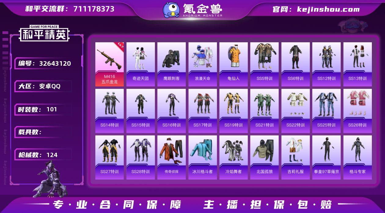 可二次【特价出售/店主推荐】安卓 手Q-3特效枪-1粉色飞行器-38173热力值-3王牌印记-101套装-124枪皮【热门品类】:套装-浪漫天命,套装-龟仙人【粉色枪皮等级】:M416-五爪金龙(七级),UMP45-萌骑冒险(四级),Mk14-福马献瑞(四级)【粉色枪皮】:M416-五爪金龙,UMP45-萌骑冒险,Mk14-福马献瑞【粉色飞行器】:辉光之愿飞行器