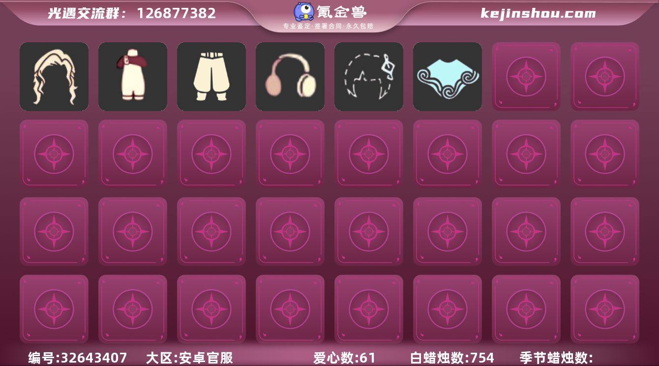 安卓官服0号巫师蝙蝠兔拖武士裤超多物品资源 【毕业图】晨岛,雨林,霞谷 【蜡烛】754 【爱心】61 身高0.85-12.85 当前1.2 【稀有礼包】兔子拖鞋,星月头冠,巫师帽,玉兔发饰,蝙蝠斗,花憩茶桌,南瓜头,皮皮猫套装 【毕业物品】黄眉企鹅面具 【热门复刻】红吉他,樱花发型,海洋斗,武士裤,虚荣,正太头,猫猫头,背带裤,红耳机,平顶帽,雨伞,黑金斗篷,蓝色音乐会