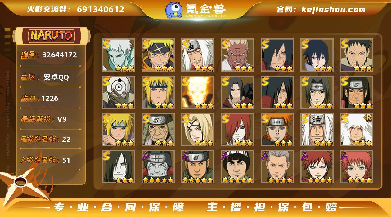 【939827】22S级忍者数-51A级忍者数 【S级忍者】:长门「秽土转生」(3星),猿飞日斩「秽土转生」(3星),波风水门「秽土转生」(3星),千手柱间「秽土转生」(3星),宇智波鼬「秽土转生」(3星),宇智波斑「秽土转生」(3星),宇智波斑「秽土转生·解」(3星),宇智波带土「忍界大战」(3星),艾「忍界大战」(3星),宇智波鼬「须佐能乎」(3星),自来也(3星),自来也「舞之豪杰」(3星),大蛇丸(3星),自来也「传说中的三忍」(3星),纲手「百豪」(3星),波风水门(3星),漩涡鸣人「九喇嘛连结」(3星),佩恩「天道」(3星),宇智波佐助「永恒万花筒」(3星),宇智波斑 「白面具」(3星宇智波斑「白面具」),漩涡鸣人·宇智波佐助(3星),宇智波带土「十尾人柱力」(3星) 【A级忍者】:艾「青年」(2星),波风水门「青年」(2星),达鲁伊「博人传」(2星),迪达拉(2星),迪达拉「秽土转生」(2星),大蛇丸「晓」(2星),奇拉比(2星),奇拉比「忍界大战」(2星),飞段(4星),飞段「死司凭血」(3星),干柿鬼鲛(5星),漩涡博人「桃式显现」(2星),漩涡鸣人「仙人模式」(2星),漩涡鸣人「九尾查克拉」(2星),迈特凯(5星),旗木卡卡西「万花筒写轮眼」(2星),旗木卡卡西「幻之真容」(2星),桃地再不斩(2星),...