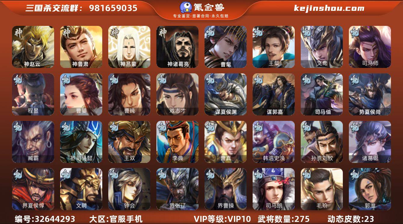 神赵云,神诸葛亮,神鲁肃,曹髦,王粲,司马师,曹婴,曹纯,戏志才,程昱,谋赵云,谯周,董允,孙寒华,骆统,界徐盛,势陆郁生,势太史慈,文鸯,张让,杨彪,麹义,刘焉,界李儒,卑弥呼,许攸,星董卓,兀突骨,司马昭,神吕蒙,势夏侯尚,SP关羽,SP曹仁,乐进,曹昂,诸葛诞,朱灵,文聘,SP姜维,钟会,曹冲,郭淮,满宠,界王异,界曹操,界司马懿,界夏侯惇,界张辽,界郭嘉,李典,曹真,韩浩史涣,陈群,钟繇,司马朗,孙资刘放,鲁芝,杜畿,界曹植,界满宠,界郭淮,卞夫人,华歆,蔡贞姬,王双,崔琰,毛玠,阮慧,司马伷,谋郭嘉,谋夏侯渊,臧霸,唐咨,势陈到,SP孙尚香,关银屏,夏侯霸,马良,关兴张苞,廖化,界马岱,关平,简雍,刘封,界法正,界关兴张苞,界刘备,界关羽,界张飞,界赵云,界马超,SP徐庶,吴懿,周仓,张松,夏侯氏,糜竺,马忠,黄皓,界黄月英,界诸葛亮,严颜,界伊籍,吕凯,张翼,傅肜,界简雍,彭羕,谋庞统,谋黄月英,谋张飞,来敏,吴班,霍峻,诸葛果,蒋琬费祎,甘夫人,势孙韶,吴珂,孙茹,凌操,大乔小乔,诸葛恪,诸葛瑾,孙鲁育,程普,韩当,潘璋马忠,虞翻,...