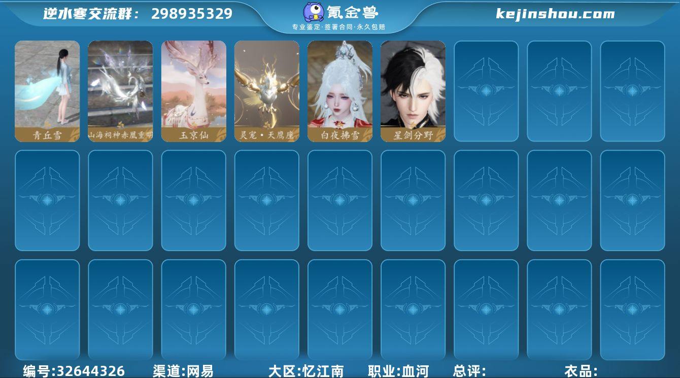 血河【把酒临风】【已用天赏石28】天霓染1, 天赏发型15, 副本外观3, 馆藏6级, 灵韵9, 8国色, 273040衣品, 64000国色值, 198套时装, 详情见图