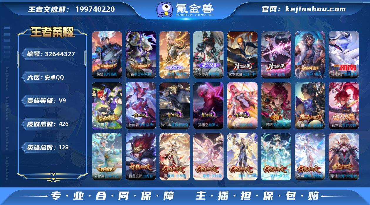 可换绑 【高质量极品v9·蛇限隐藏灵宝·2无双公孙离曜·2典藏韩信铠·5珍品怪盗基德·李信年限·白虎志·孙行者·飞衡·4星元传说·2传说天幕·贵族积分13万】可二次·25按键,4星传说,2天幕 20王者印记,满级铭文 ·CD18804,安卓Q-V9-426皮肤-2典藏皮肤-2无双-5珍品传说-43传说-113史诗【英雄全皮】:刘禅全皮,孙权全皮,苍全皮,狂铁全皮,敖隐全皮,蒙恬全皮,暃全皮,赵怀真全皮,戈娅全皮,空空儿全皮【荣耀典藏】:铠银白咏叹调,韩信弑枪猎影【无双皮肤】:曜器灵螭龙剑,公孙离离恨烟【珍品传说】:宫本武藏黑崎一护,暃朽木白哉,张飞兔狲蓬尾,孙策时之奇旅,马可波罗怪盗基德【星元皮肤】:孙悟空幽冥火,孙尚香未来机甲,狄仁杰星际治安官,虞姬无限倾慕【天幕】:黑崎一护天幕,狸尾假日天幕【传说皮肤】:阿轲罗刹妄海,马超神骥逐星野,花木兰异界灵契,公孙离云诺千山,司空震愿照山河定,女娲愿照千秋盛,妲己愿照众生和,澜愿照九州拓,蔡文姬愿照福禄聚,虞姬愿照岁时盈,云缨幻光神枪,裴擒虎祥瑞亨通,嬴政玄雷天君,桑启鸣野蒿,澜逐花归海,鲁班七号时之奇旅,兰陵王影龙天霄,云缨鹤归松栖,干将莫邪画中仙,虞姬无限倾心,伽罗炽翼辉光,孙悟空齐天大圣,小乔...