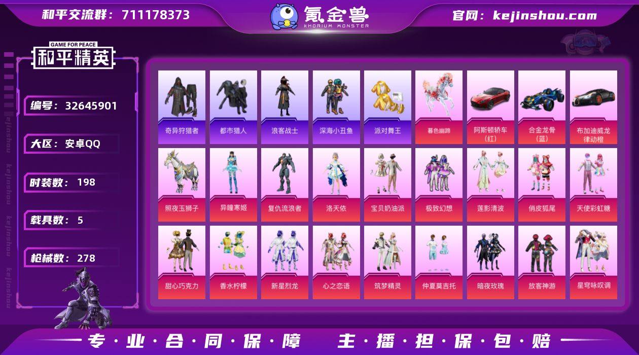 【和平精英】18粉装,27特效枪,5载具,历史最高段位:无敌战神 王牌印记24次 热力值:171787,336套装,460枪械,642装备,300战备;套装:沙丘之主-图卡盟,暮色玫影-艾丽娅,灵驹仙姬-云歌,套装-甜心巧克力,套装-宝贝奶油派,套装-天使彩虹糖,套装-梦幻火箭,套装-放客神游,套装-新星烈龙,套装-极致幻想,套装-心之恋语,套装-俏皮狐尾,套装-香水柠檬,角色-洛天依,套装-暗夜玫瑰,套装-筑梦精灵,角色-复仇流浪者,套装-仲夏莫吉托,套装-莲影清波,角色-异瞳寒姬,套装-星穹咏叹调,套装-特训学院,套装-青年教官,套装-红色运动,套装-黄色运动,套装-蓝色运动,套装-黄色伏地魔,套装-白色伏地魔,套装-黑色伏地魔,套装-帅气教官,套装-竞技名士,套装-深蓝色名流,套装-酒红色名流,套装-湖蓝色名流,套装-黄色名流,套装-猛禽,套装-长空猛禽,套装-漫步者,套装-竞技勇士朋克,套装-黎明保卫者,套装-海岛探路者,套装-旭日情侣,套装-冷焰舞者,套装-灼焰舞者,套装-都市猎人,套装-浪漫天命,套装-特战装甲,套装-战地菁英,套装-贵族骑装,套装-灰色格斗者,套装-活力之心,套装-甜蜜告白,套装-春日漫步,套装-龙腾端午,套装-燃烧卡路里,套装-滨海假日...