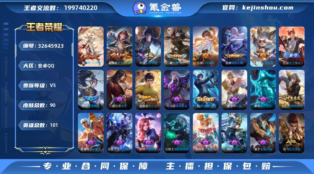 【王者荣耀】珍品无双0 典藏0 无双0 珍品传说0 传说8 史诗26 英雄105 皮肤90 贵族5级 传说皮肤:孙尚香-异界灵契|猫影幻舞|一念神魔|云鹰飞将|飞鸢探春|寅虎·赤拳|幻光神枪|愿照·九州拓__稀有限定:傲雪梅枪|李小龙|大漠名商|海滩派对|海盐诗旅|皇家上将|金庭之子|匿光追影者|千军破阵|擒涛扼浪|沙漠行僧|探海日志|天穹祈灯|阴阳师|真爱魔法|暗隐猎兽者|暗渊魔法|白龙吟|乘风破浪|功夫厨神|节奏热浪|金属风暴|魅力维加斯|偶像歌手|水果甜心|赵云-未来纪元|摇滚巨星|鹰眼统帅|永昼|幽灵船长|修罗|曙光守护者|特工魅影|谧流熔炉|云中旅人|圣弓游侠|龙之律动|布丁狗之约|虚灵犬护|逆浪荇歌|黄忠-百相守梦__优质皮肤:尼罗河女神|创世神祝|孤猎|午夜歌剧院|碧珀绯影|秩序猎龙将|启蛰|第七人偶|街头旋风|地府判官|赤焰之缨|福禄兄弟|隐刃|爱与和平|魇语军师|灼热之刃|潮玩探月行|功夫老勺|死亡骑士|黄金武士|时空谍影|破局者|危途狂花|拳王|时尚教父|西施-雪境奇遇|星梦巡礼|景韶洛都|乱世虎臣|乓乓大师|五福同心|沉稳之力|春野闲踪|灵野札记|命运加冕|小满鸭|死霸装|无双福将|踏浪烽翎|云械蓝图|克喵__贵族等级:无贵族等级__王者段位:荣耀黄金练手小号 愿照·九州拓,寅虎·赤拳,猫影...