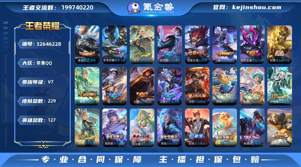 【WZ181708】苹果Q-V7-最强王者段位-127英雄-229皮肤-1典藏皮肤-15传说-66史诗【英雄全皮】:鬼谷子全皮,敖隐全皮,空空儿全皮【荣耀典藏】:李白鸣剑曳影【传说皮肤】:韩信踏浪归,云缨神骥越千峰,关羽神骥镇沧海,马超神骥逐星野,后羿神树通天,司马懿九山相柳,桑启鸣野蒿,铠琥珀纪元,澜逐花归海,兰陵王影龙天霄,孙尚香异界灵契,刘备时之恋人,达摩黄金狮子座,百里玄策白虎志,宫本武藏地狱之眼【限定皮肤】:姜子牙天穹之誓,狄仁杰阴阳师,赵云皇家上将,墨子神迹守卫,孙尚香异界灵契,庄周高山流水,钟无艳超时空战士,元歌云间偶戏,夏侯惇朔风刀,甄姬落雪兰心,狄仁杰魔术师,狄仁杰万华元夜,达摩沙漠行僧,项羽海滩派对,老夫子醍醐杖,老夫子航海奇遇记,程咬金演武夺筹,兰陵王影龙天霄,兰陵王金庭之子,孙悟空至尊宝,孙悟空孙行者,李元芳银河之约,李元芳云中旅人,钟馗驱傩正仪,雅典娜黎明之约,鬼谷子原初探秘者,鬼谷子五谷丰年,苏烈千军破阵,百里玄策白虎志,百里玄策原初追逐者,弈星混沌棋,梦奇顽趣,公孙离蜜橘之夏,沈梦溪大漠名商,明世隐疑决卦,裴擒虎李小龙,云中君纤云弄巧,猪八戒猪悟能,鲁班大师探海日志,桑启海盐诗旅,艾...