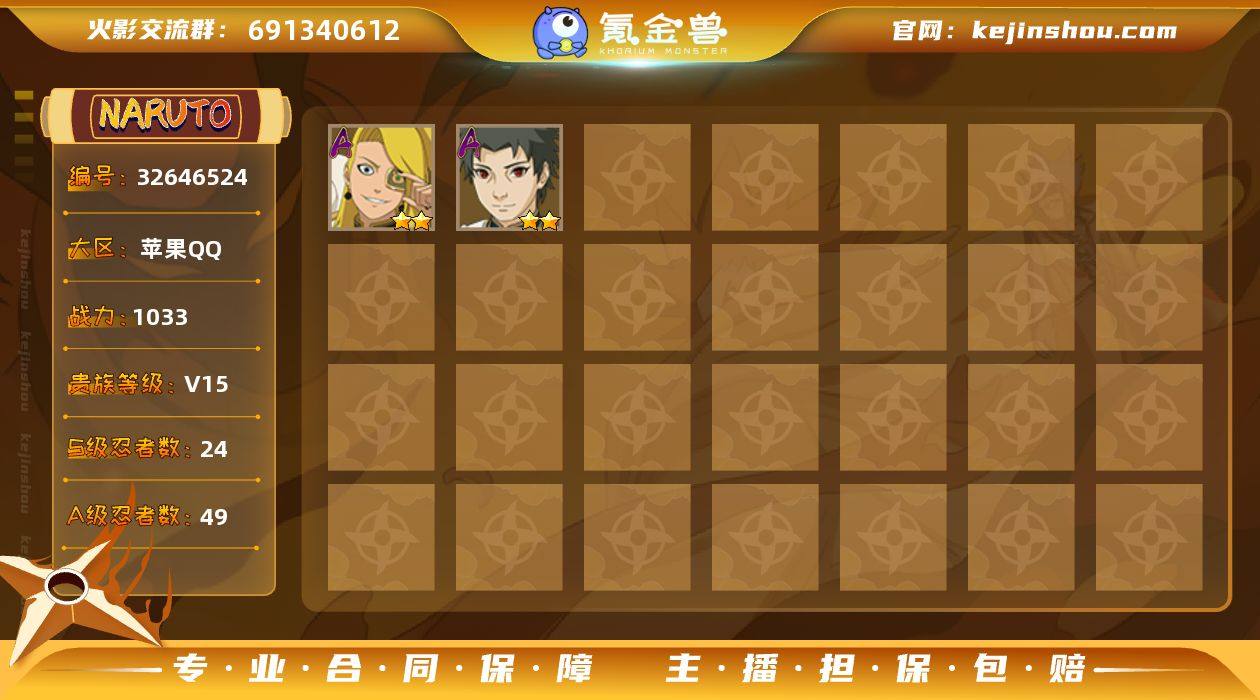 【939923】[17906914]V15 24S忍 49A忍 24通灵 1033.8W战力 可二次 可修改实名 【S级忍者】宇智波止水「须佐能乎」,艾「忍界大战」,大筒木桃式,宇智波斑「秽土转生·解」,千手柱间·木叶创立,宇智波佐助「永恒万花筒」,宇智波斑 「木叶创立」,自来也 「舞之豪杰」,旗木卡卡西「须佐能乎」,大筒木舍人 「最终章」,自来也 「传说中的三忍」,漩涡鸣人 「暴怒·第六尾」,宇智波斑「五影会谈」,漩涡鸣人·宇智波佐助,半藏「秽土转生」,千手扉间「秽土转生」,猿飞日斩「秽土转生」,鬼灯幻月「二代目水影」,宇智波斑,千手柱间,千手扉间,宇智波鼬 「须佐能乎」,佩恩「天道」,波风水门