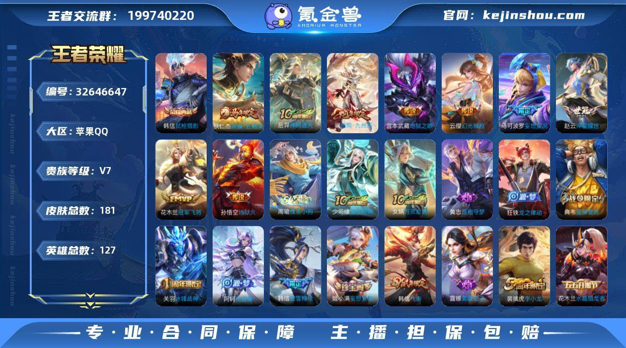 【939930】[17907468]V7 1典藏 9传说 127英雄 181皮肤 可修改实名 男号 【英雄全皮】敖隐全皮,蚩奼全皮,大禹全皮 【稀有英雄】敖隐(小龙人),大司命,韩信(韩跳跳),夏洛特(夏师傅),艾琳,橘右京(橘子),娜可露露(鸟人),不知火舞,赵云,金蝉(唐僧),戈娅 【荣耀水晶】弑枪猎影(韩信典藏) 【传说皮】神骥·赴朔漠,幻光神枪,神树通天,地狱火,地狱之眼,淬星耀世,冠军飞将,妄想实况 【珍宝阁皮】妄想食味,胡桃夹子 【赛季/战令皮】剑破天穹(s35),天穹之誓(s36),凯尔特女王(s7),狰(s8),饕餮(s9),烛龙(s10),重明(s11),穷奇(s12),御狮(s13),御霄(s14),御旌(s15),御銮(s16),朔风刀(s17),混沌棋(s18),疑决卦(s19),醍醐杖(s20),原初探秘者(s21),万华元夜(s22),演武夺筹(s23),驱傩正仪(s24),千军破阵(s25),猎兽之王,白昼王子,朔望之晖,蓝屏警告,神迹守卫-钟馗,狮舞东方,金庭之子(s27) 【史诗皮】化蝶舞,线条小狗-周瑜,巫礼祀神,万灵启世,龙之律动,百相守梦-黄忠,紫霞仙子,白龙吟,黄金分割率,千年之狐,节奏热浪,女仆咖啡,水果甜心,心灵骇客,幽灵船长,心灵战警,纤云弄巧,繁星吟游(呼啦呼啦),缤纷独角兽,逐浪之夏,月团寄思,水晶猎龙者,圣诞狂欢,圣诞恋歌,鹰眼统帅,魅力维加斯 【限定皮】愿照·九州拓...