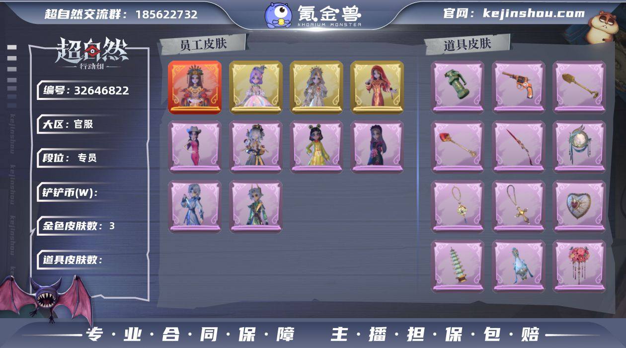 ZR818 段位:专员 红色皮肤数量:1 粉色皮肤数量:0 金色皮肤数量:3 紫色皮肤数量:6 铲铲币:30000 外观:镜生遗梦 圣光之谕 遗失的童话 镜花辞 耀眼的你 除妖小师妹 泽引山海 青云逸歌 丝缕哀歌 呱呱雨衣 青苔绿 孔雀绿 宝石红 牛仔蓝 素雅白 后室幸存者 碧落 道具:鸣沙鼓 龙鳞 宝剑八 桃心 飞花令 凤鸣九天 紫霄 happy猫 金丝眼镜 祝祷词 蔷薇物语 昆仑镜 圣心之泪 新星时代 金戈玄铜 青玉抱丹 伏妖塔 牛啤背包 天使的呼唤 蝶恋花 动作:新年摇 企鹅舞 luvaboy 鹏友摇 心跳摇 小雨摇 舞台中心 举牌 抬手 旋转舞 失落