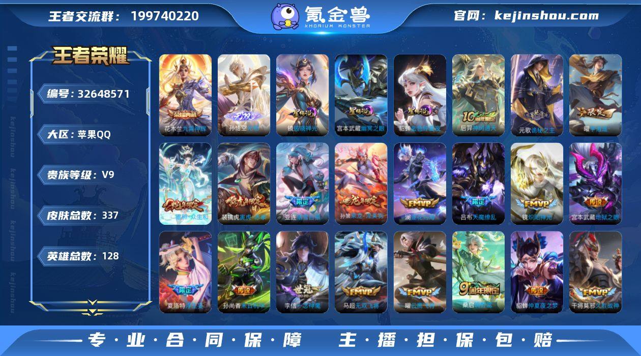 V9-337皮肤-1典藏皮肤-1无双-27传说-99史诗,ME2218 【英雄全皮】:刘禅全皮,孙权全皮,鲁班大师全皮,蒙恬全皮,影全皮 【荣耀典藏】:花木兰九霄神辉 【无双皮肤】:孙悟空无相 【传说皮肤】:后羿神树通天,元歌诡秘之主,妲己愿照众生和,桑启鸣野蒿,亚连落雪白狼,孙策乘龙淬吴钩,澜逐花归海,夏洛特浮生妄,吕布怒海麟威,李白诗剑行,马超无双飞将,裴擒虎寅虎赤拳,曜李逍遥 ,周瑜音你心动,镜炽阳神光,虞姬启明星使,曜云鹰飞将,李信一念神魔,刘备时之恋人,张良黄金白羊座,干将莫邪久胜战神,花木兰冠军飞将,后羿黄金射手座,貂蝉仲夏夜之梦,孙尚香末日机甲,宫本武藏地狱之眼,吕布天魔缭乱 【限定皮肤】:暃埋骨钱,蔡文姬夏日便利店,虞姬夏日便利店,姜子牙天穹之誓,狄仁杰阴阳师,赵云皇家上将,赵云百木心枪,嬴政优雅恋人,高渐离死亡摇滚,钟无艳超时空战士,白起夜都怪侠,芈月幻夜卜梦,吕布天魔缭乱,吕布御风骁将,周瑜赤莲之焰,元歌无心,夏侯惇朔风刀,甄姬游园惊梦,甄姬落雪兰心,曹操天狼征服者,马可波罗暗影游猎,马可波罗山海玄木吟,狄仁杰魔术师,狄仁杰万华元夜,达摩沙漠行僧,项羽海滩派对,老夫子醍醐杖,关羽冰锋战神,程咬...
