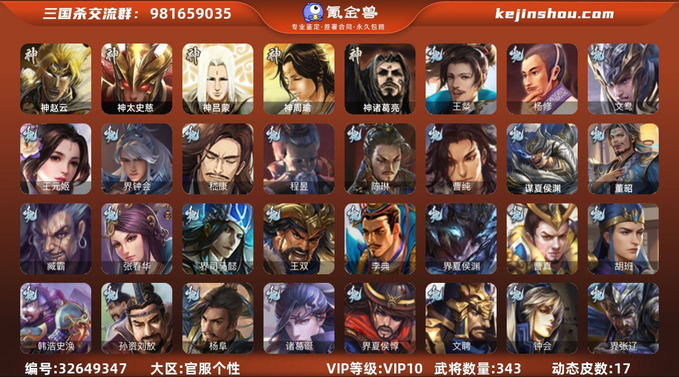 神赵云,神太史慈,神诸葛亮,王粲,杨修,王元姬,界钟会,嵇康,陈琳,曹纯,程昱,谋诸葛亮,马云騄,谋夏侯氏,谋赵云,王平,沙摩柯,谯周,界黄忠,董允,孙寒华,留赞,界徐盛,贺齐,文鸯,谋貂蝉,星魏延,左慈,星黄忠,审配,麹义,刘焉,沮授,界左慈,界李儒,谋张角,兀突骨,神吕蒙,神周瑜,SP关羽,SP蔡文姬,乐进,曹昂,诸葛诞,朱灵,文聘,SP姜维,张春华,钟会,曹冲,郭淮,满宠,界王异,界曹操,界司马懿,界夏侯惇,界张辽,界许褚,界郭嘉,李典,曹真,韩浩史涣,陈群,曹叡,钟繇,司马朗,郭皇后,孙资刘放,界甄姬,吕虔,鲁芝,界典韦,界荀彧,杜畿,毌丘俭,界邓艾,张恭,贾逵,界曹彰,界满宠,卞夫人,华歆,蔡贞姬,袁涣,王双,崔琰,毛玠,杨阜,谋于禁,界曹休,牵招,胡班,谋夏侯渊,界夏侯渊,臧霸,董昭,SP孙尚香,关银屏,夏侯霸,马良,关兴张苞,廖化,界马岱,关平,简雍,刘封,界法正,界关兴张苞,界刘备,界关羽,界张飞,界赵云,界马超,SP徐庶,吴懿,周仓,张松,刘谌,夏侯氏,马忠,李严,界黄月英,界诸葛亮,严颜,界伊籍,界卧龙诸葛,界庞统,...
