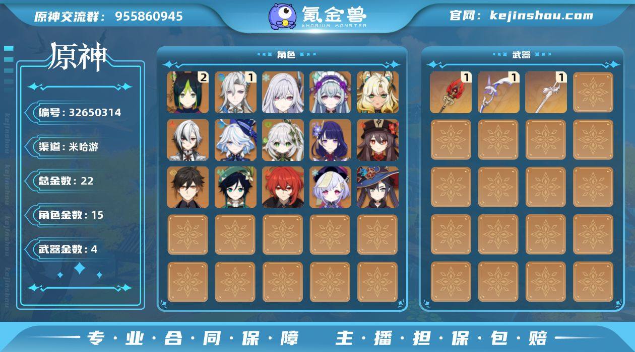 【YSZ3221】57级/22黄/女主/15个五星角色/4个五星武器/一命那维莱特/芙宁娜/钟离/雷电将军/纳西妲/阿蕾奇诺/胡桃/希诺宁/丝柯克/二命提纳里/莫娜/温迪/七七/迪卢克/梦见月瑞希/护摩之杖/阿莫斯之弓/风鹰剑