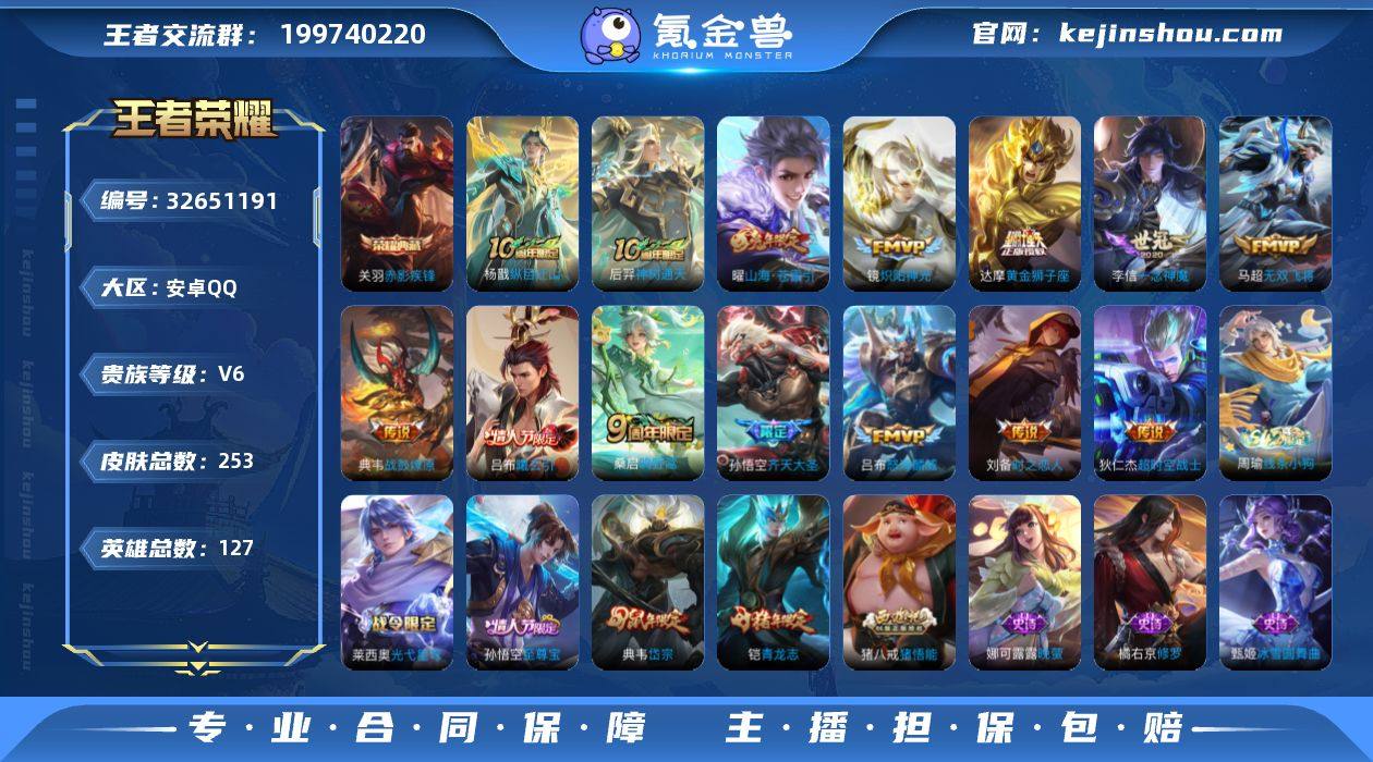 【940018】安卓Q-V6-永恒钻石II段位-127英雄-253皮肤-1典藏皮肤-14传说-63史诗 【英雄全皮】:孙权全皮 【荣耀典藏】:关羽赤影疾锋 【传说皮肤】:杨戬纵目迁山,后羿神树通天,桑启鸣野蒿,吕布曦玄引,典韦战鼓燎原,孙悟空齐天大圣,曜山海苍雷引,吕布怒海麟威,马超无双飞将,镜炽阳神光,李信一念神魔,刘备时之恋人,达摩黄金狮子座,狄仁杰超时空战士 【限定皮肤】:姜子牙天穹之誓,狄仁杰阴阳师,赵云皇家上将,孙尚香蔷薇恋人,鲁班七号乒乒小将,庄周高山流水,高渐离玩趣恶龙,钟无艳超时空战士,扁鹊奇幻香踪,芈月幻夜卜梦,元歌无心,夏侯惇朔风刀,甄姬落雪兰心,典韦岱宗,狄仁杰魔术师,狄仁杰万华元夜,达摩星际陆战队,达摩沙漠行僧,项羽海滩派对,程咬金演武夺筹,王昭君午后时光,兰陵王金庭之子,孙悟空至尊宝,孙悟空齐天大圣,后羿圣弓游侠,李元芳云中旅人,钟馗驱傩正仪,杨戬潮玩骑兵,干将莫邪真爱魔法,鬼谷子五谷丰年,黄忠火炮绅士,铠青龙志,苏烈千军破阵,梦奇顽趣,沈梦溪大漠名商,裴擒虎李小龙,裴擒虎擒涛扼浪,狂铁电玩高手,云中君纤云弄巧,猪八戒猪悟能,嫦娥拒霜思,曜山海苍雷引,鲁班大师探海日志,桑启海盐诗旅,艾琳女武...