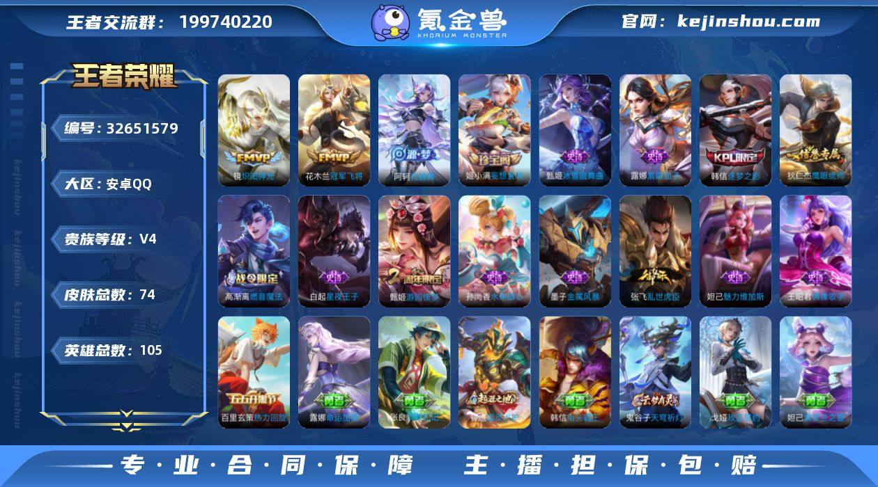 【特价出售】安卓q-V-74皮肤2传说 【传说】 炽阳神光 冠军飞将 【热门】逐梦之影 燃音魔法 金属风暴 热力回旋 妄想食味 紫霞仙子 星夜王子 偶像歌手 街头霸王 冰雪圆舞曲 演武夺筹 驱傩正仪 千军破阵 大漠名商 云中旅人 丁香结 魅力维加斯 水果甜心 古海寻踪 天穹祈灯 游园惊梦 乱世虎臣 鹰眼统帅 105英雄-营地ID:1831473611