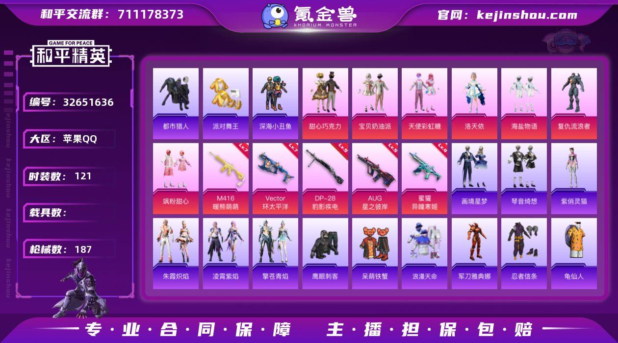 YZJ16147-可二次-苹果Q-不可转区-4稀有7粉装7特效枪14热门【精品身法号 可萌可身法 伤感小雾神套装 巧克力三姐妹 洛天依 金鞋 都市 双马尾 红眼罩 天命 粉团憨憨 软羊咩咩 蓝螳螂 忍者信条 幻影公爵 狂沙 满级M4暖熊萌萌 满级Vector环太平洋 暖熊萌萌背包头盔 幻影战神头盔 3款飞行器 7张改名卡】121套装187枪皮 52879热力值 8印记 历史卓越王牌16星 【4稀有】 都市猎人 浪漫天命 派对舞王 派对舞王(金靴子) 【7粉装】 宝贝奶油派 天使彩虹糖 甜心巧克力 洛天依 飒粉甜心 海盐物语 复仇流浪者 【7特效枪】 DP-28-豹影疾电 (5级) 蜜獾-异瞳寒姬 (4级) AUG-星之彼岸 (5级) M416-暖熊萌萌 (7级) Mk14-福马献瑞 (2级) ACE32-萌骑漫游 (3级) Vector-环太平洋 (7级) 【14热门】 Mark.06 龟仙人 呆萌铁蟹 鹰眼刺客 深海小丑鱼 暗影哥特 粉红小猪 忍者信条 狂沙舞者 漫步者 军刀雅典娜 英勇保护者 弄潮海豚 M762-奇异狩猎者 【2头盔】 甜心宝贝头盔 幻影战神头盔 【3背包】 梦幻火箭背包 甜心宝贝背包 幻影战神背包 营地ID:752467973