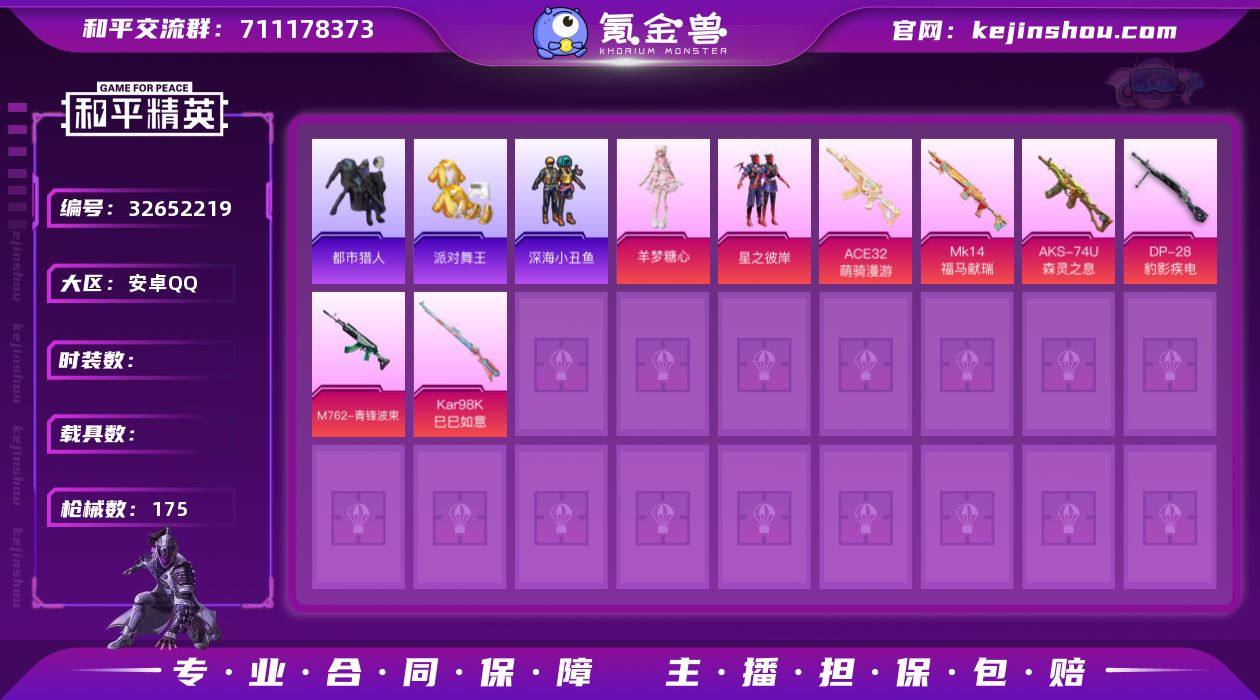 【0载具 6特效枪 2粉装 175枪皮 147套装】小雾神身法号 深海小丑鱼 暗影哥特 都市猎人 金鞋 套装-都市猎人,套装-沙漠毒蛇,套装-派对舞王,套装-暗影哥特,套装-深海小丑鱼,套装-星之彼岸,角色-羊梦糖心 M762-青锋波束,ACE32-萌骑漫游,Kar98K-巳巳如意,Mk14-福马献瑞,AKS-74U-森灵之息,DP-28-豹影疾电 异域银装飞行器,马上有福飞行器,鸡智如我飞行器,炫彩糖果飞行器,狂鲨锋刃飞行器,编号:ZPOZZ02