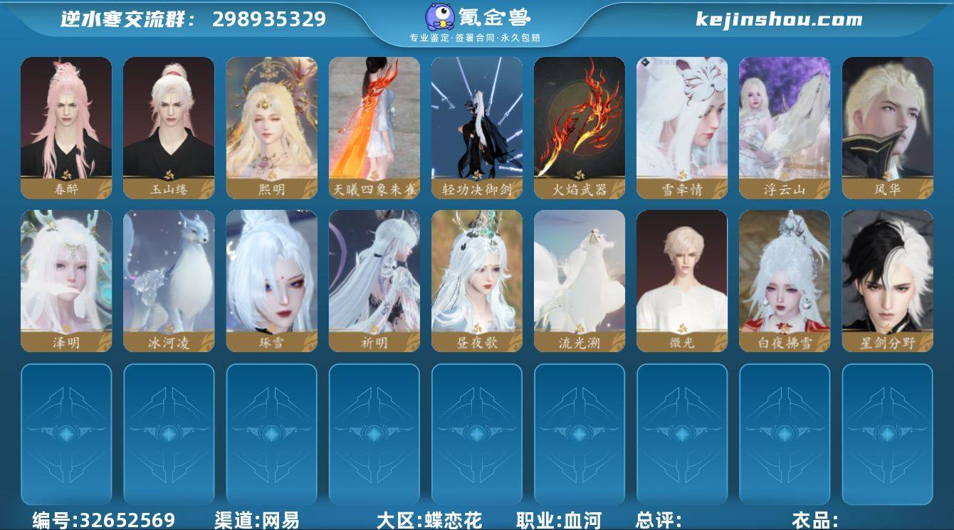 已用天赏石:53 天霓染数量:14 【网易手机账号】 【无换绑冷却】 【素问】 【男】 【8级】 【把酒临风】 【互通】 转盘外观3 副本外观3 天赏外观16 天赏祥瑞2 武器环身1 转盘外观:追光,玉山绻,微光; 副本外观:白夜拂雪,星剑分野,霜途无间; 天赏外观:昼夜歌,虔心,祈明,不归羽,熙明,聆夜,泽明,风华,春醉,浮云山,雪牵情,琢雪,雷霆武器,火焰武器,轻功诀御剑,绝技天曦四象·朱雀; 天赏祥瑞:冰河凌,流光溯; 武器环身:掌星执辰;