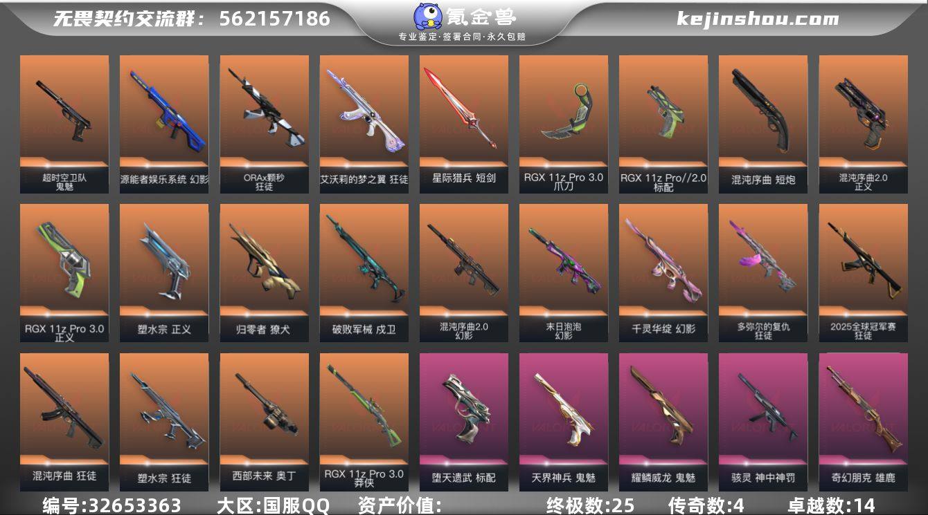 【PTWW3397】终极*25/传奇*4/卓越*14/皮肤*81/等级*111/段位:铂金/RGX 11z Pro//3.0套装/幻棱/炼狱/维斯/暮蝶/钛狐/壹决/铁臂/捷风/雷兹/幽影/不死鸟/贤者/猎枭/蝰蛇/零/芮娜/奇乐/尚勃勒/霓虹/夜露/星礈/K/O/盖可/黑梦/钢锁/近战武器-碎心裂刃/魔术火花/穿花蝴蝶/剥皮小刀/紫金爪刀/爪刀-RGX 11z Pro 3.0/黑波之刃/星际猎兵 短剑/2025全球冠军赛 狂徒/狂徒-混沌序曲/狂徒-塑水宗/多弥尔的复仇 狂徒/狂徒-ORAx颗秒/狂徒-艾沃莉的梦之翼/狂徒-堕天遗武/狂徒-掠影/狂徒-紫阙金琅/幻影-千灵华绽/幻影-末日泡泡/幻影-混沌序曲2.0/幻影-源能者娱乐系统/幻影-般若假面/幻影-天界神兵2.0/幻影-侦察力量/幻影-异鳞魔蛇/戍卫-破败军械/獠犬-归零者/冥驹-堕天遗武/莽侠-RGX 11z Pro 3.0/莽侠-神中神罚/奥丁-西部未来/雄鹿-奇幻朋克/骇灵-神中神罚/标配-RGX 11z Pro//2.0/标配-堕天遗武/标配-神罚/正义-RGX 11z Pro 3.0/正义-塑水宗/正义-混沌序曲2.0/鬼魅-超时空卫队/鬼魅-天界神兵/鬼魅-耀鳞威龙/短炮-混沌序曲/热舞环节 卡面/铁之华 卡面/无畏契约GO!第一卷:芮娜 卡面/无畏契约GO!第一卷:零 卡面/别冒尖 卡面/代号红色 卡面/新兵报到 卡面/V契约 卡面/无畏契约 卡面/买装还是存钱...
