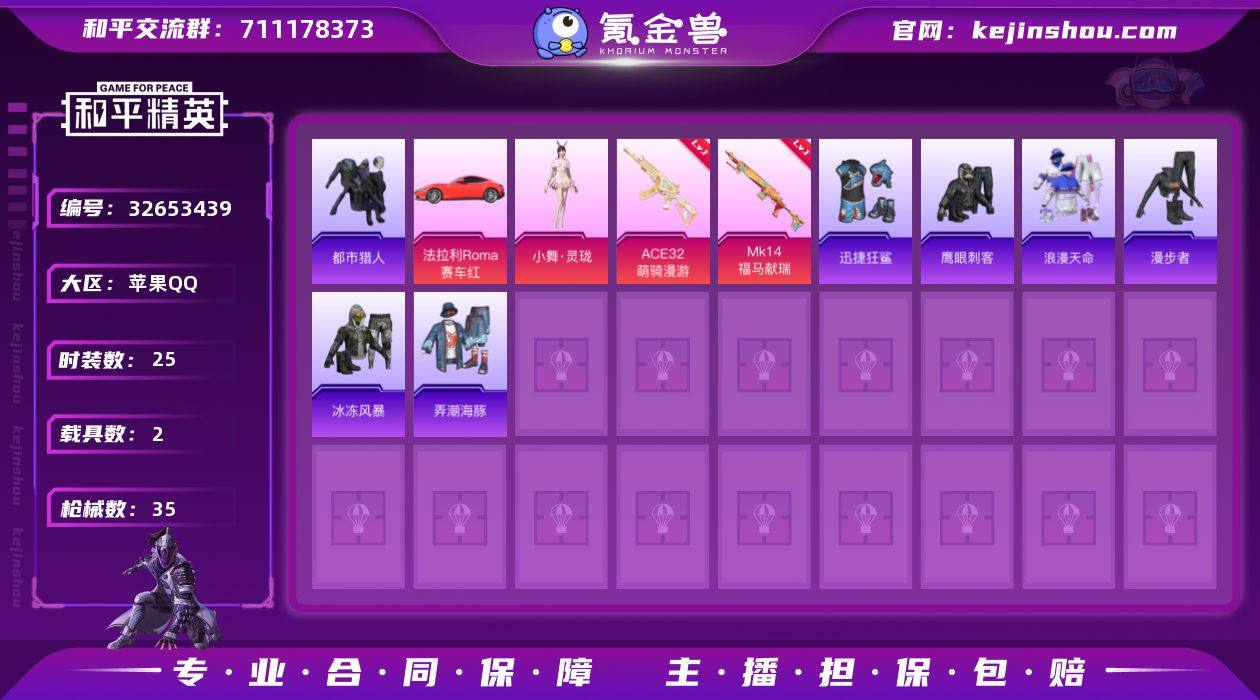 M1047198【2载具-1粉装-2特效枪 都市猎人 浪漫天命 M416-黄金龙骨 金羽特工头盔背包全套】苹果手Q-2载具-1粉装-2特效枪-25套装-35枪皮-1王牌印记-超级王牌10星-11090热力值【2载具】法拉利Roma(赛车红),霜月冰狼【1粉装】人物-小舞·灵珑【2特效枪】Mk14-福马献瑞[4级],ACE32-萌骑漫游[4级]【4稀有】浪漫天命,都市猎人,AWM-黄金龙骨,M416-黄金龙骨【2飞行器】冰狼掠影飞行器,云朵驼驼飞行器【3头盔】金羽特工头盔,深海小丑鱼头盔,幻影战神头盔【1背包】金羽特工背包【53其它衣服和枪皮】迅捷狂鲨,SS37特训,冰冻风暴,夏日倾情,角色-奈斯,红釉青花,雨过天青,角色-魂电,街头潮人,角色-X,角色-幸运青,角色-绯影武装,鹰眼刺客,魅力单车,角色-阿虎,弄潮海豚,黄色名流,缤纷果语,漫步者,迅捷龙虾,福马献瑞,狙击之神,AKM-影袭,PKM-雨过天青,MG3-幻世战舞者,VSS-星之彼岸,GROZA-福马献瑞,M16A4-雨过天青,AMR-雨过天青,20-H-绶带小兔,M24-影袭,GROZA-影袭,汤姆逊-像素花束,AKM-龙的传人,M24-天降萌叽,UZI-影袭,P90-霜月狼主,SVD-绯影武装,F57-绯影武装,大砍刀-像素花束,大砍刀-霜月狼主,Kar98K-影袭,DP-28-彩虹符号,AA12-G-雨过天青,汤姆逊-天降萌叽,烟雾弹-小舞,SCAR-L-绶带小兔,Famas-霜...
