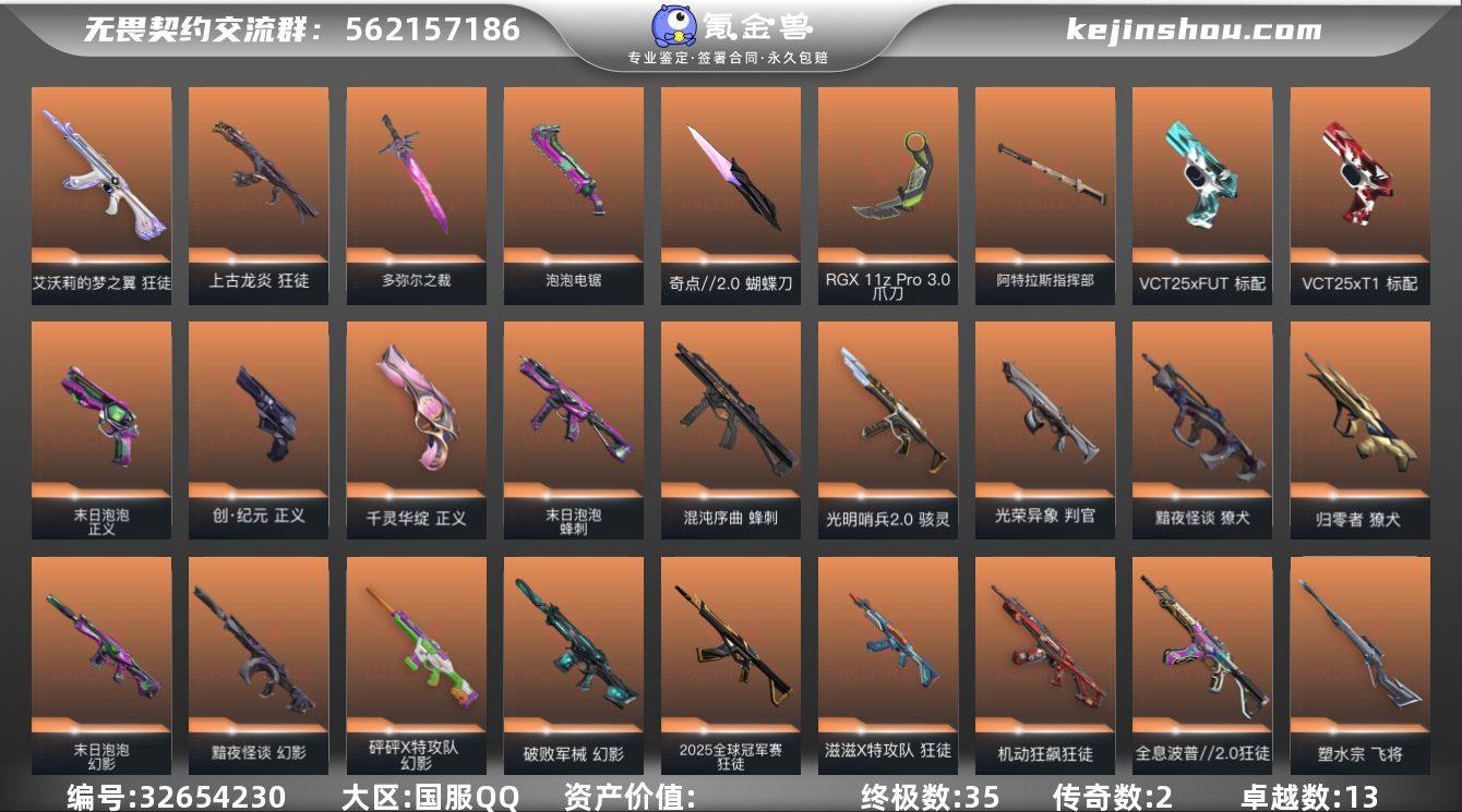 【940068】【套装】:末日泡泡套装,滋滋X特攻队套装 【英雄】:幻棱,炼狱,维斯,暮蝶,钛狐,壹决,捷风,幽影,不死鸟,贤者,猎枭,蝰蛇,零,芮娜,奇乐,盖可,黑梦 【近战 武器】:近战武器-多弥尔之裁,近战武器-泡泡电锯,近战武器-魔术火花,近战武器-嘟昂嘟昂超弹力水球拳套,近战武器-奇点//2.0 蝴蝶刀,近战武器-RGX 11z Pro//3.0 爪刀,近战武器-落英飞旋,近战武器-镭切,近战武器-鬼丸国纲,近战武器-未来开拓者,近战武器-个人近战单位,近战武器-阿特拉斯指挥部 甩棍,近战武器-魔术火花 【狂徒】:狂徒-艾沃莉的梦之翼,狂徒-上古龙炎,狂徒-2025全球冠军赛,狂徒-机动狂飙,狂徒-全息波普//2.0,狂徒-滋滋X特攻队,狂徒-冰点凝冻,狂徒-盖世英雄,狂徒-离子武器//2.0,狂徒-奇幻朋克//3.0 【幻影】:幻影-黯夜怪谈,幻影-砰砰X特攻队,幻影-破败军械,幻影-末日泡泡,幻影-般若假面,幻影-神中神罚 【獠犬】:獠犬-黯夜怪谈,獠犬-归零者 【冥驹】:冥驹-归零者,冥驹-滋滋X特攻队,冥驹-末日泡泡 【飞将】:飞将-塑水宗 【战神】:战神-盖世英雄,战神-奇幻朋克//2.0 【奥丁】:奥丁-紫阙金琅//2.0,奥丁-掠影//2.0 【判官】:判官-光荣异象 【雄鹿】:...