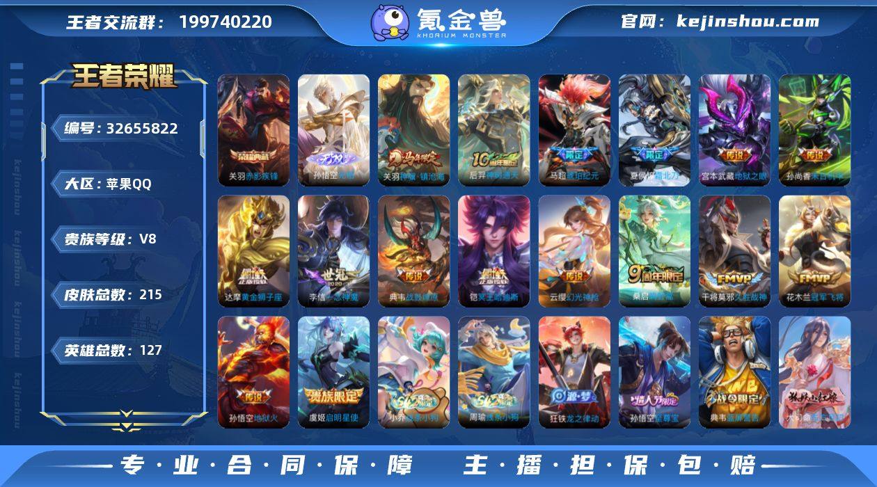 【940093】[17916957]V8 1典藏 1无双 16传说 127英雄 215皮肤 可修改实名 男号 【英雄全皮】大禹全皮 【稀有英雄】大司命,嬴政(始皇帝),韩信(韩跳跳),夏洛特(夏师傅),艾琳,橘右京(橘子),娜可露露(鸟人),不知火舞,赵云,金蝉(唐僧),戈娅 【荣耀水晶】赤影疾锋 【无双皮】无相 【传说皮】神骥·镇沧海,典韦战鼓燎原,铠冥王哈迪斯,琥珀纪元马超,幻光神枪,神树通天,黄金狮子座,地狱火,地狱之眼,末日机甲-孙尚香(绿蚂蚱),一念神魔,冠军飞将,久胜战神 【珍宝阁皮】万物之道 【赛季/战令皮】古海寻踪(s33),海盐诗旅(s30),剑破天穹(s35),天穹祈灯(s34),青焰无极,苍威无极,天穹之誓(s36),蔡文姬夏日便利店,虞姬夏日便利店,烛龙(s10),重明(s11),穷奇(s12),御狮(s13),御霄(s14),御旌(s15),御銮(s16),朔风刀(s17),混沌棋(s18),疑决卦(s19),醍醐杖(s20),原初探秘者(s21),万华元夜(s22),驱傩正仪(s24),猎兽之王,白昼王子,朔望之晖,蓝屏警告,神迹守卫-钟馗,狮舞东方,赤莲之焰,驯魔猎人,沙漠行僧(s26) 【史诗皮】破空之剑,炽弈燎原,战舞者,蒙犽顽岩魄,东方月初,线条小狗-周瑜,线条小狗-小乔,龙之律动,紫霞仙子,苍穹之光,电玩小子(小书包),白龙吟,黄金分割率,特工魅影,猫狗日记-孙策,乱世虎臣,节...