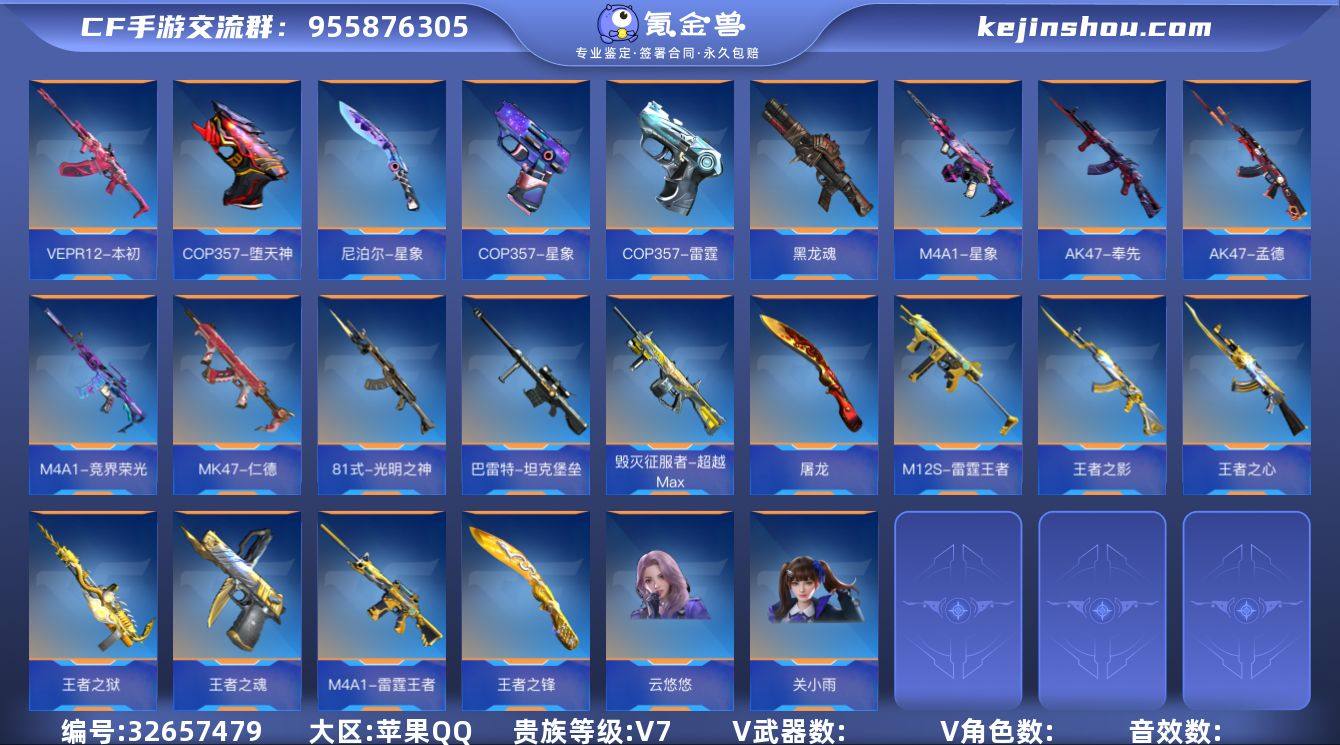 HG737612/【三国星象带双皮+奉先带无双+狙击权+7把英雄级COP+生化M4雷霆带冰皮+本初+黑龙魂+王狱+王霆+M12S雷霆+90生化增伤戒指+孟德+挑战坦克堡垒+竞界荣光+女团云悠悠带双皮+送37把钥匙】可二次可转区/V7-230V-20王者/M4A1-星象+双璀璨星辰AK47-奉先+无双M200-权M4A1-雷霆王者+冰霜奇迹王者之狱王者之影王者之心王者之誉王者之霆M12S-雷霆王者/CZS2-仲康VEPR12-本初MK47-仁德AK47-孟德/黑龙魂巴雷特-坦克堡垒M4A1-竞界荣光81式-光明之神/COP357-安琪拉*2COP357-星象*2COP357-堕天神*2COP357-雷霆COP357-黑铁/王者之魂王者之锋/王竞手雷套王圣手雷套/本初套星象套毁灭套/炽芒蝶刃SCAR白虎AK竞技战魂烈龙毁灭征服者-超越MaxCZ75-策双持GLOCK18-本初思召剑尼泊尔-星象激昂霸王枪铁锹-孟德屠龙/云悠悠+青紫皮炽天使X关小雨瞳(角色)/C4皮肤显血戒指消灭特效消灭音效狙击枪线抛物线武器按键最终消灭/90生化增伤戒指/37把钥匙(以截图为准)