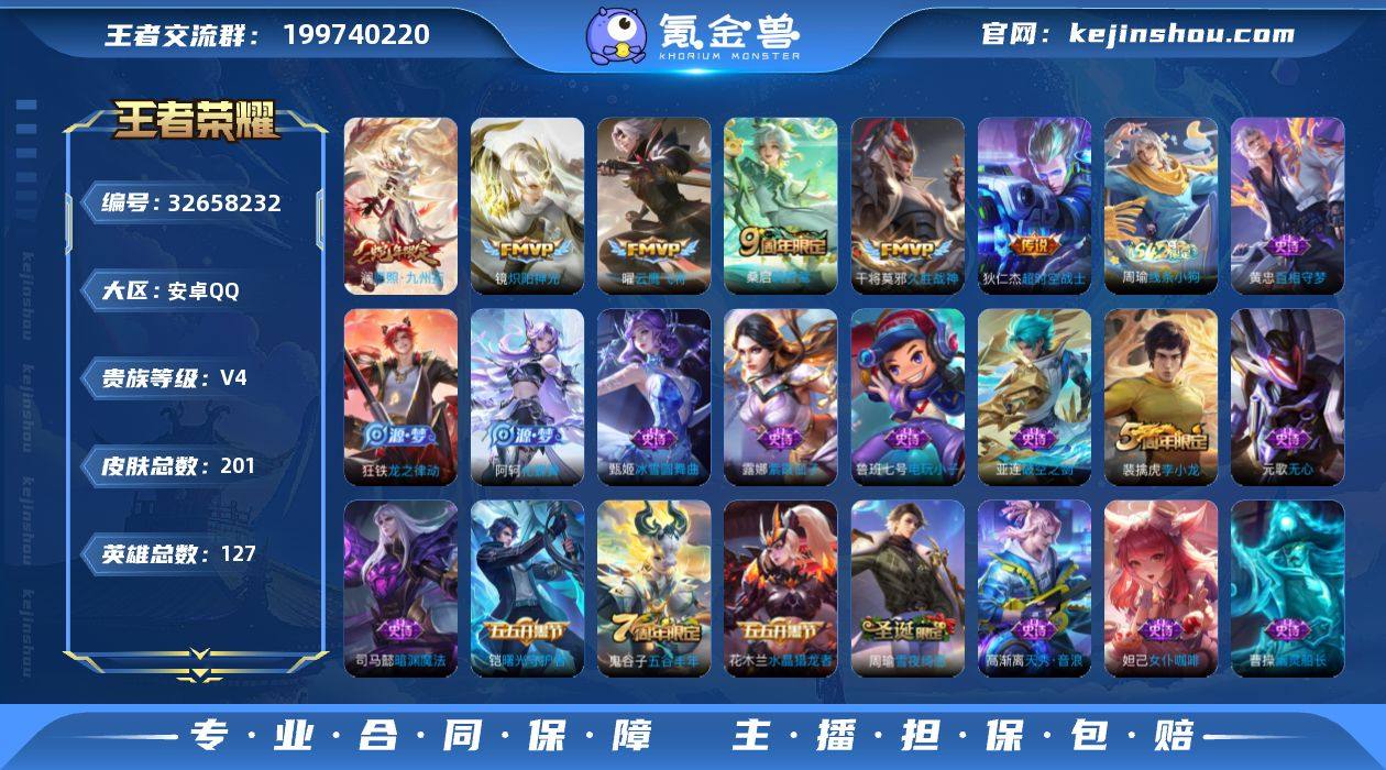 王者19960,不可二次,安卓Q-V4-最强王者段位-127英雄-201皮肤-6传说-44史诗 【英雄全皮】:空空儿全皮 【传说皮肤】:澜愿照九州拓,桑启鸣野蒿,镜炽阳神光,曜云鹰飞将,干将莫邪久胜战神,狄仁杰超时空战士 【限定皮肤】:姜子牙天穹之誓,狄仁杰阴阳师,高渐离玩趣恶龙,周瑜赤莲之焰,元歌无心,夏侯惇朔风刀,典韦穷奇,狄仁杰万华元夜,达摩沙漠行僧,项羽海滩派对,老夫子醍醐杖,程咬金演武夺筹,兰陵王金庭之子,李元芳云中旅人,钟馗驱傩正仪,干将莫邪胡桃夹子,雅典娜黎明之约,蔡文姬繁星吟游,鬼谷子原初探秘者,鬼谷子五谷丰年,苏烈千军破阵,弈星混沌棋,沈梦溪大漠名商,明世隐疑决卦,裴擒虎李小龙,裴擒虎擒涛扼浪,米莱狄御霄,盾山御銮,上官婉儿梁祝,鲁班大师探海日志,桑启海盐诗旅,阿古朵江河有灵,张良古海寻踪,蒙恬荣光圣徽,鬼谷子天穹祈灯,沈梦溪龙舞盛年,刘邦剑破天穹,刘备异域游侠 【年限皮肤】:澜愿照九州拓 【赛季限定】:典韦穷奇,米莱狄御霄,盾山御銮,夏侯惇朔风刀,弈星混沌棋,明世隐疑决卦,老夫子醍醐杖,鬼谷子原初探秘者,狄仁杰万华元夜,程咬金演武夺筹,钟馗驱傩正仪,苏烈千军破阵,达摩沙漠行僧,兰陵王金庭之子,...