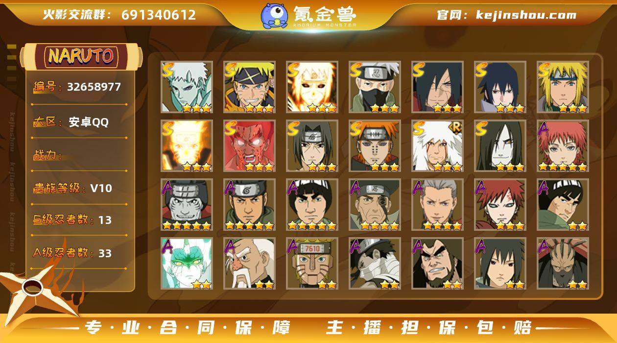 V10/S忍13/A忍33/二星A-日向宁次·忍界大战/二星A-大野木「侠隐江湖」/三星S-波风水门「九喇嘛连结」/三星S-宇智波带土「十尾人柱力」/二星A-达鲁伊「五代目雷影」/二星A-飞段「死司凭血」/二星A-宇智波鼬/三星S-宇智波佐助「永恒万花筒」/五星A-猿飞阿斯玛/三星S-旗木卡卡西「须佐能乎」/二星A-长门「青年」/二星A-桃地再不斩/五星A-蝎/2星小南「神驹佑将」/三星S-佩恩「天道」/三星S-漩涡鸣人·宇智波佐助/三星S-波风水门/三星S-漩涡鸣人 「九喇嘛连结」/二星A-秋道丁次「忍界大战」/二星A-猿飞阿斯玛「秽土转生」/二星A-角都「秽土转生」/五星A-迈特凯/二星A-漩涡博人「桃式显现」/三星A-我爱罗「疾风传」/2星旗木卡卡西「神威对决」/二星A-长十郎「六代目水影」/二星A-蝎「绯流琥」/三星S-自来也「舞之豪杰」/二星A-桃地再不斩「秽土转生」/三星S-迈特凯「死门」/二星A-宇智波带土「暴怒」/四星A-土台「忍界大战」/四星A-飞段/二星A-药师兜「半蛇斗篷」/二星A-神农 「羁绊」/二星A-宇智波泉奈/二星A-巳月「仙人模式」/三星S-大蛇丸/三星S-宇智波斑「秽土转生·解」/二星A-艾 「青年」/二星A-迈特凯「青春爆炸」/二星A-宇智波佐助「须佐能乎」/五星A-干柿鬼鲛/二星A-机械鸣人...