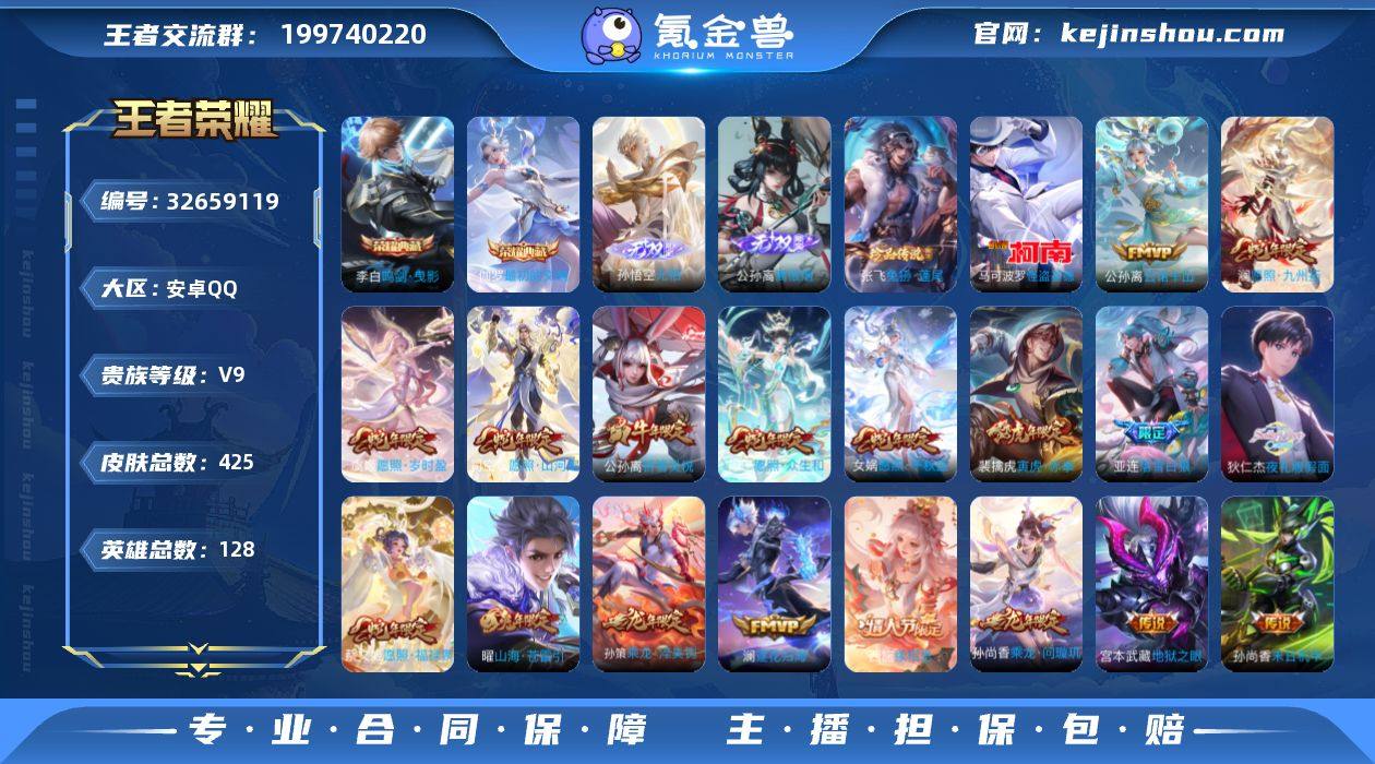 【WZ181558】安卓Q-V9贵族积分126740-最强王者段位-128英雄-425皮肤-2典藏皮肤-2无双-2珍品传说-37传说-127史诗【英雄全皮】:孙权全皮,苍全皮,亚连全皮,敖隐全皮,蒙犽全皮,司空震全皮,海诺全皮【荣耀典藏】:李白鸣剑曳影,伽罗最初的交响【无双皮肤】:孙悟空无相,公孙离离恨烟【珍品传说】:张飞兔狲蓬尾,马可波罗怪盗基德【传说皮肤】:公孙离云诺千山,西施续相思,杨玉环星之鸣奏,司空震愿照山河定,女娲愿照千秋盛,妲己愿照众生和,澜愿照九州拓,蔡文姬愿照福禄聚,虞姬愿照岁时盈,云缨幻光神枪,裴擒虎祥瑞亨通,桑启鸣野蒿,云中君群星魔术团,亚连落雪白狼,孙尚香乘龙问璇玑,孙策乘龙淬吴钩,澜逐花归海,狄仁杰夜礼服假面,王昭君永恒水手月亮,诸葛亮鹤羽星尊,公孙离记忆之芯,伽罗炽翼辉光,曜山海苍雷引,狄仁杰神器狴犴令,不知火舞绯月行,女娲补天,裴擒虎寅虎赤拳,公孙离祈雪灵祝,诸葛亮时雨天司,虞姬启明星使,干将莫邪久胜战神,梦奇胖达荣荣,后羿黄金射手座,貂蝉仲夏夜之梦,孙尚香末日机甲,宫本武藏地狱之眼,狄仁杰超时空战士【限定皮肤】:公孙离离恨烟,暃埋骨钱,蒙犽顽岩魄,蔡文姬夏日便利店,虞姬夏日便利店,姜子牙天穹之...