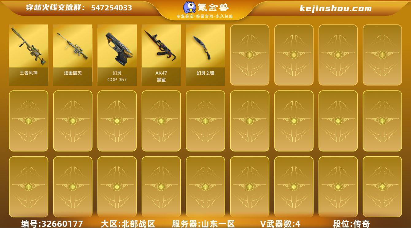 【ky6326】山东一区-6V-1王者武器数-1炫金武器数 【热门武器】:COP 357-幻灵 【王者炫金武器】:王者风神,炫金毁灭 【角色】:云海玲珑,暗夜-X,龙儿,曼陀罗-X,潘多拉-X 【英雄级武器】:AK47-黑鲨,COP 357-幻灵,幻灵之锋,手雷-云海游龙 【源级武器】:魂·雷神-新春神龙,魂·雷神-萌柴*2,魂·黑骑士-幻能朋克,魂·黑骑士-破浪10年,御·黑骑士-冰魄,源·机械迷城,龙血-赛博蓝,M4A1-青龙-掌上穿越火线,灵·HK417-朱雀-甜蜜火力,源-金色蔷薇,金色蔷薇-狼王,源-极光,魂·裁决-凤灵*2,源·毁灭,魂·毁灭-秦师,魂·Barrett-朱雀- 新春神龙,源·Barrett-朱雀,魂·修罗-迷彩,魂·天神-阿努比斯,魂·屠龙-春桃 【道具】:绿色巨人,灵魂忍者,迷雾幽灵,夺命之镰,防化服*2,金色流光-枪王排位,星辰流光-枪王排位,枪王排位28赛季金色流光,防弹头盔*3,防弹衣*3,C4工具钳*3,手雷包*3 【特殊枪械】: