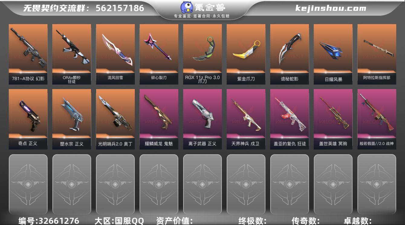 【爪子刀+扇子+奇点+盖亚+多热门T0主战 】精品手慢无系列!【可二次 可秒换绑】S194177 无畏契约/162等级/未定级段位/28英雄/66皮肤/资产25130/已使用R点890/剩余R点65/ORA-x-颗秒-狂徒,781-A协议-幻影,天界神兵-戍卫,盖亚的复仇-狂徒,碎心裂刃,阿特拉斯指挥部-甩棍,日耀风暴-遗器,诡秘蛇影-军刀,流风回雪,紫金爪刀,RGX-11z-Pro//3.0-爪刀,盖世英雄-冥驹,光明哨兵//2.0-奥丁,般若假面//2.0-战神,塑水宗-正义,奇点-正义,耀鳞威龙-鬼魅,离子武器-正义