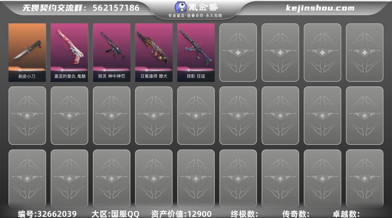 MWW620有二次 【游戏等级】Lv40 【段位】 黄金I 【R点】345 【皮肤总价值】12,900 【英雄数量】14 【皮肤数量】25 【挂饰数量】27 【卡面数量】38 【喷漆数量】31 【狂怒】狂怒-蒙太奇 狂怒-幻语魔咒 【近战武器】近战武器-剥皮小刀 近战武器-诡秘蛇影军刀 近战武器-极简主义//2.0爪刀 【雄鹿】雄鹿-幻语魔咒 【鬼魅】鬼魅-盖亚的复仇 鬼魅-诡秘蛇影 【狂徒】狂徒-掠影 狂徒-诡秘蛇影 狂徒-离子武器//2.0 【戍卫】戍卫-甜蜜战术 戍卫-般若假面 戍卫-折光棱晶 【奥丁】奥丁-日耀风暴 奥丁-末日之翼 【獠犬】獠犬-日冕雄师 【幻影】幻影-末日之翼 【莽侠】莽侠-诡秘蛇影 【判官】判官-诡秘蛇影 【标配】标配-折光棱晶 【飞将】飞将-末日之翼 【短炮】短炮-末日之翼 【蜂刺】蜂刺-折光棱晶 【骇灵】骇灵-神中神罚