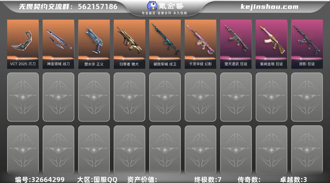 【MWW781】【套装】:VCT 2025 赛季套装 【英雄】:幻棱,炼狱,暮蝶,钛狐,壹决,捷风,雷兹,幽影,不死鸟,贤者,猎枭,蝰蛇,零,芮娜,尚勃勒,霓虹,斯凯,夜露,星礈,盖可,钢锁 【近战武器】:近战武器-穿花蝴蝶,近战武器-VCT 2025 爪刀,近战武器-神圣领域 战刀 【狂徒】:狂徒-堕天遗武,狂徒-掠影,狂徒-紫阙金琅 【幻影】:幻影-千灵华绽,幻影-神圣领域 【戍卫】:戍卫-破败军械,戍卫-月球哨兵 【獠犬】:獠犬-归零者,獠犬-神圣领域 【冥驹】:冥驹-星云暗涌 【莽侠】:莽侠-月球哨兵 【战神】:战神-神圣领域 【雄鹿】:雄鹿-月球哨兵 【骇灵】:骇灵-星云暗涌 【蜂刺】:蜂刺-星云暗涌 【正义】:正义-塑水宗,正义-超限闪存,正义-纳米打击,正义-月球哨兵 【鬼魅】:鬼魅-宿怨,鬼魅-星云暗涌 【狂怒】:狂怒-神圣领域 【卡面】:终章:激斗汉堡 卡面,进入射程 卡面,《双城之战》拥抱 卡面,精灵大战 卡面,欢迎来到底城 卡面,南瓜盛典 卡面,修车达人 卡面,正义的化身 卡面,失而复得 卡面,纤云弄巧 卡面,表象之下 卡面,沙雕爆能器 卡面,无畏契约GO!第一卷:芮娜 卡面,无畏契约GO!第一卷:零 卡面,《双城之战》金克丝 卡面,暗枪 卡面,胡...