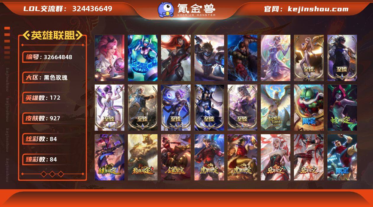 WL551【可二次 黑色玫瑰 全英雄 皮肤927 终极6 神话11 限定243 传说84 神话小小英雄2 神话棋盘1】 172英雄-927皮肤-84炫彩-段位:钻石 大元素使 灵魂守卫 未来战士 武装战姬 DJ-娑娜 K/DA ALL OUT 萨勒芬妮 独立音乐人 至臻花仙使者卡特琳娜 至臻 K/DA ALL OUT卡莎 至尊魔女莫甘娜 至臻 K/DA 卡莎 至臻魅惑女巫女枪 至臻 真实伤害 赛娜 至臻 黑夜使者 凯隐 至臻 DRX剑魔 至臻月蚀骑士赛娜 至臻 青花瓷 丽桑卓 泳池派对女枪 防暴机器人布里茨 泳池派对蕾欧娜 泳池派对辛德拉 冠军之箭艾希 御星魔矢艾希 创星之灵璐璐 海之歌艾希 泳池派对佐伊 夺命美人卡特琳娜 野兽猎人蛮王 冠军之刃锐雯 冠军之刃 锐雯 2016 海之歌萨勒芬妮 征服者贾克斯 克格汪克格莫 泳池派对雷克顿 防暴士兵炼金 泳池派对嘉文四世 2021全球总决赛嘉文四世 泳池派对塔莉垭 钢铁军团拉克丝 地底世界崔斯特 泳池派对奥莉安娜 破空枪骑孙悟空 泳池派对布隆 冠军之血希瓦娜 泳池派对李青 海之歌泽丽 勇者阿狸 制胜金靴李青 冠军蔷薇妖姬 舞会公主安妮 惊悚派对阿木木 防暴士兵格雷福斯 泳池派对格雷福斯 2022 全球总决赛 阿兹尔 冠军之隐劫 制胜金球龙龟 糖果使徒费德提克 泳池派对黑默丁格 警用试作体K-9内瑟斯...