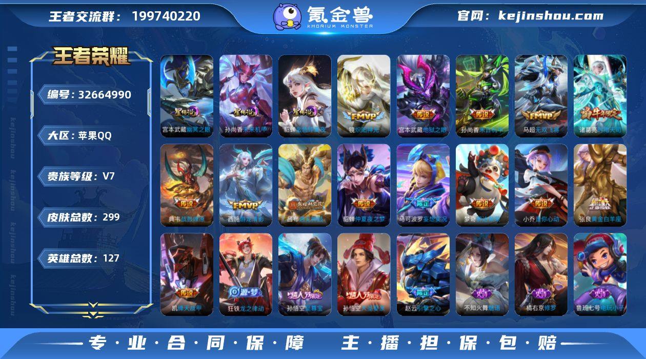 ·澜愿照九州拓·战鼓燎原·遇见神鼓·妄想实况·怒海麟威·无双飞将·游龙清影·时雨天司·无二次包过】w21292-苹果Q-127英雄-299皮肤-15王者印记-300铭文-贵族积分5w【贵族7】【1典藏·3星传说·18传说·1天幕·1按键·290幸运值】【因赛季更新游戏段付以上号为准!】 【荣耀典藏】:花木兰九霄神辉 【星元皮肤】:孙尚香未来机甲,宫本武藏幽冥之眼,貂蝉金色仲夏夜 【天幕】:共赏芳华天幕 【传说皮肤】:澜愿照九州拓,桑启鸣野蒿,典韦战鼓燎原,吕布遇见神鼓,马可波罗妄想实况,吕布怒海麟威,马超无双飞将,西施游龙清影,小乔音你心动,诸葛亮时雨天司,铠绛天战甲,镜炽阳神光,虞姬启明星使,张良黄金白羊座,梦奇胖达荣荣,貂蝉仲夏夜之梦,孙尚香末日机甲,宫本武藏地狱之眼 【限定皮肤】:姜子牙天穹之誓,狄仁杰阴阳师,赵云皇家上将,赵云引擎之心,墨子神迹守卫,嬴政优雅恋人,嬴政白昼王子,孙尚香蔷薇恋人,庄周高山流水,高渐离死亡摇滚,白起夜都怪侠,吕布御风骁将,吕布遇见神鼓,元歌云间偶戏,元歌无心,甄姬游园惊梦,马可波罗妄想实况,狄仁杰魔术师,狄仁杰万华元夜,达摩星际陆战队,达摩沙漠行僧,项羽海滩派对,老夫子醍醐杖,老夫子航海奇遇记,程咬金演武...