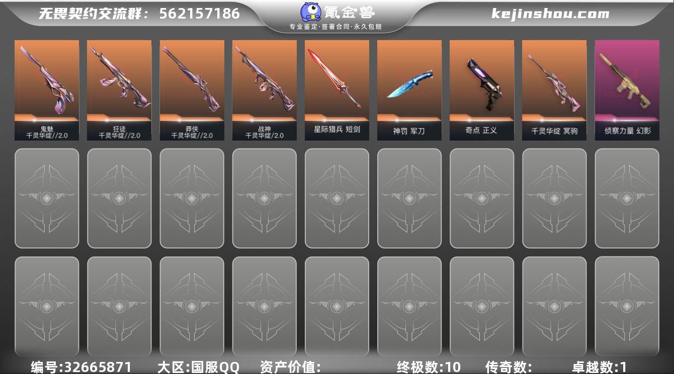 【NF260】【套装】:千灵华绽//2.0套装 【英雄】:炼狱,暮蝶,钛狐,壹决,铁臂,捷风,雷兹,不死鸟,贤者,猎枭,零,芮娜,尚勃勒,霓虹,斯凯,夜露,盖可,黑梦 【近战武器】:近战武器-碎心裂刃,近战武器-流风回雪,近战武器-神罚 军刀,近战武器-星际猎兵 短剑 【狂徒】:狂徒-千灵华绽//2.0,狂徒-神罚//2.0 【幻影】:幻影-侦察力量 【冥驹】:冥驹-千灵华绽 【莽侠】:莽侠-千灵华绽//2.0 【战神】:战神-千灵华绽//2.0 【正义】:正义-奇点 【鬼魅】:鬼魅-千灵华绽//2.0 【卡面】:热舞环节 卡面,红鳞松叶 卡面,无畏契约GO!第一卷:芮娜 卡面,无畏契约GO!第一卷:零 卡面,钢锁vs盖可 卡面,别冒尖 卡面,代号红色 卡面,新兵报到 卡面,V契约 卡面,无畏契约 卡面 【喷漆】:审判之爪 喷漆,买装还是存钱 喷漆,红鳞 喷漆,暴走萝莉 喷漆,松叶 喷漆,放下武器 喷漆,胜利属于无畏契约 喷漆,GLHF 喷漆,无畏契约 喷漆 【挂饰】:天外飞客 挂饰,无畏契约 纪念币 挂饰