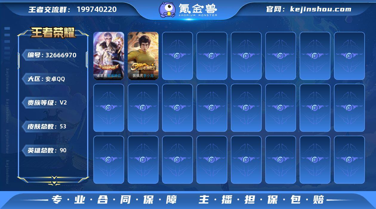 安卓Q 可二次 1典藏 90英雄53皮肤 星域神启 李小龙 地狱岩魂 黄金分割率 心灵战警 千年之狐 街头霸王 朔风刀 混沌棋 疑决卦 醍醐杖 万华元夜 拳王 魅力维加斯 探海日志 古海寻踪 天穹祈灯 王者荣耀账号