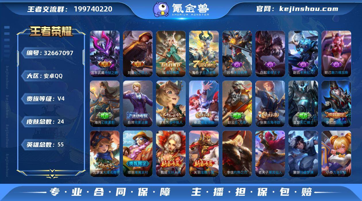 【YX1231】24皮肤2传说/时之恋人/地狱之眼【限定皮肤】:狄仁杰阴阳师,项羽海滩派对,李元芳云中旅人,鬼谷子五谷丰年,沈梦溪大漠名商,桑启海盐诗旅,张良古海寻踪【赛季限定】:沈梦溪大漠名商,李元芳云中旅人,桑启海盐诗旅,张良古海寻踪【史诗皮肤】:鬼谷子五谷丰年,瑶遇见神鹿,白起星夜王子,吕布末日机甲,妲己魅力维加斯,赵云未来纪元【其他皮肤】:后羿完美运算,张良古海寻踪,海月幻泉雾影,桑启海盐诗旅,李元芳云中旅人,沈梦溪大漠名商,孙膑归虚梦演,关羽龙腾万里,狄仁杰阴阳师,甄姬花好人间,亚瑟死亡骑士,赵云忍炎影,项羽海滩派对,李信灼热之刃,小乔万圣前夜,老夫子潮流仙人【营地ID】:1807206965