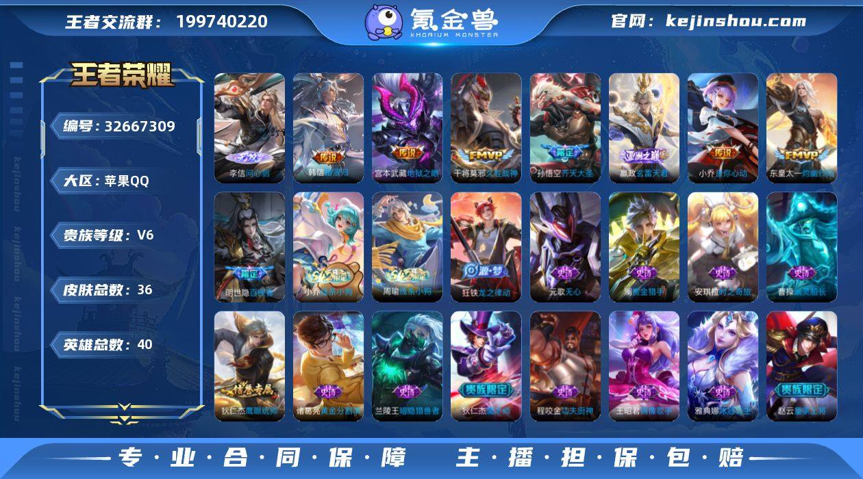 苹果Q-V6-至尊星耀V段位-40英雄-36皮肤-1无双-7传说-16史诗 【无双皮肤】:李信问心剑 【传说皮肤】:韩信踏浪归,嬴政玄雷天君,东皇太一灼幽烈阳,孙悟空齐天大圣,小乔音你心动,干将莫邪久胜战神,宫本武藏地狱之眼 【限定皮肤】:狄仁杰阴阳师,赵云皇家上将,元歌无心,狄仁杰魔术师,项羽海滩派对,孙悟空齐天大圣 【赛季限定】:亚瑟荣光之誓 【战令限定】:周瑜线条小狗,小乔线条小狗 【史诗皮肤】:明世隐百晓客,周瑜线条小狗,小乔线条小狗,狂铁龙之律动,元歌无心,澜赏金猎手,安琪拉时之奇旅,狄仁杰鹰眼统帅,程咬金功夫厨神,雅典娜冰冠公主,诸葛亮黄金分割率,兰陵王暗隐猎兽者,曹操幽灵船长,嬴政摇滚巨星,狄仁杰魔术师,王昭君偶像歌手,赵云皇家上将 【其他皮肤】:吕布舞狮寰,鲁班七号班班快跑,妲己线条小狗,安琪拉糖果风暴,艾琳鹤鸣心笺,亚瑟荣光之誓,牛魔牛运亨通,王昭君幻想奇妙夜,狄仁杰阴阳师,韩信街头霸王,项羽海滩派对 【营地ID】:1573763510