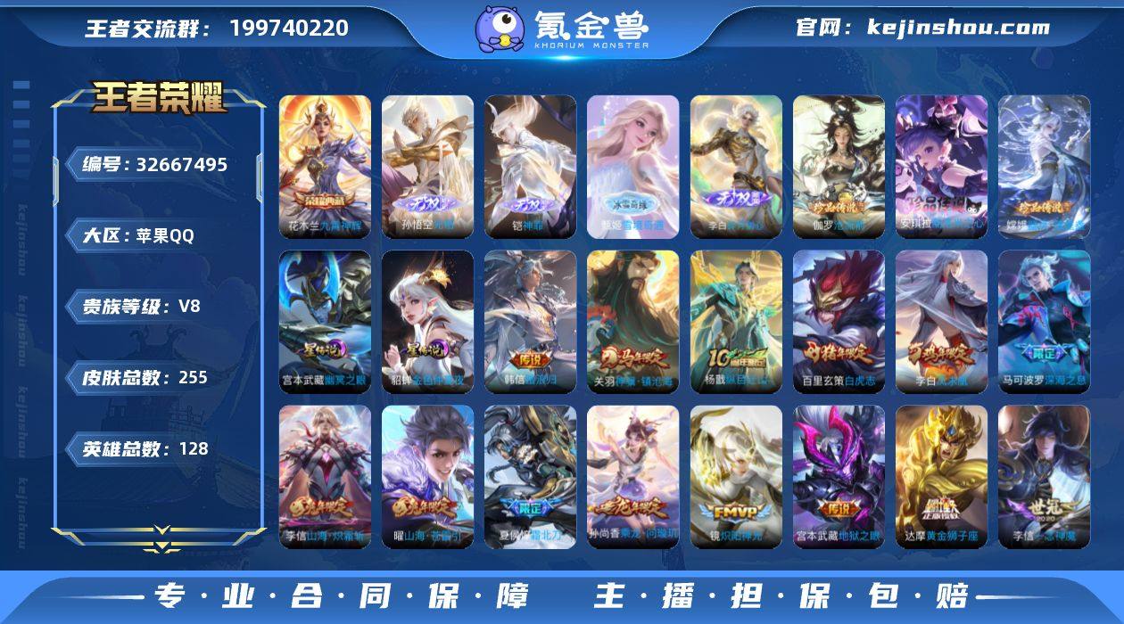 可换绑【高性价比精品号·4无双孙悟空铠甄姬李白·典藏花木兰·珍品伽罗安琪拉嫦娥·白虎志凤求凰·马年关羽龙年孙尚香兔年小乔李信·傲雪梅枪孙行者朱雀志神威·不可二次包过】 16按键 2星传说,6王者印记,230五级铭文,不可二次包过KK10252苹果Q-V8-最强王者段位-128英雄-255皮肤-1典藏皮肤-4无双-3珍品传说-25传说-67史诗【英雄全皮】:孙权全皮,敖隐全皮【荣耀典藏】:花木兰九霄神辉【无双皮肤】:孙悟空无相,铠神罪,甄姬雪境奇遇,李白碎月剑心【珍品传说】:伽罗沧流箭,安琪拉酷洛米之心,嫦娥器灵落星盏【星元皮肤】:貂蝉金色仲夏夜,宫本武藏幽冥之眼【传说皮肤】:韩信踏浪归,关羽神骥镇沧海,杨戬纵目迁山,桑启鸣野蒿,夏侯惇霜北刀,典韦战鼓燎原,孙尚香乘龙问璇玑,干将莫邪画中仙,小乔山海琳琅生,曜山海苍雷引,李信山海炽霜斩,李白诗剑行,马可波罗深海之息,马超无双飞将,赵云淬星耀世,王昭君乞巧织情,镜炽阳神光,虞姬启明星使,李信一念神魔,虞姬云霓雀翎,达摩黄金狮子座,百里玄策白虎志,貂蝉仲夏夜之梦,李白凤求凰,宫本武藏地狱之眼【限定皮肤】:夏侯惇霜北刀,姜子牙天穹之誓,狄仁杰阴阳师,小乔山海琳琅生,赵云皇家上将,赵云龙胆,妲...